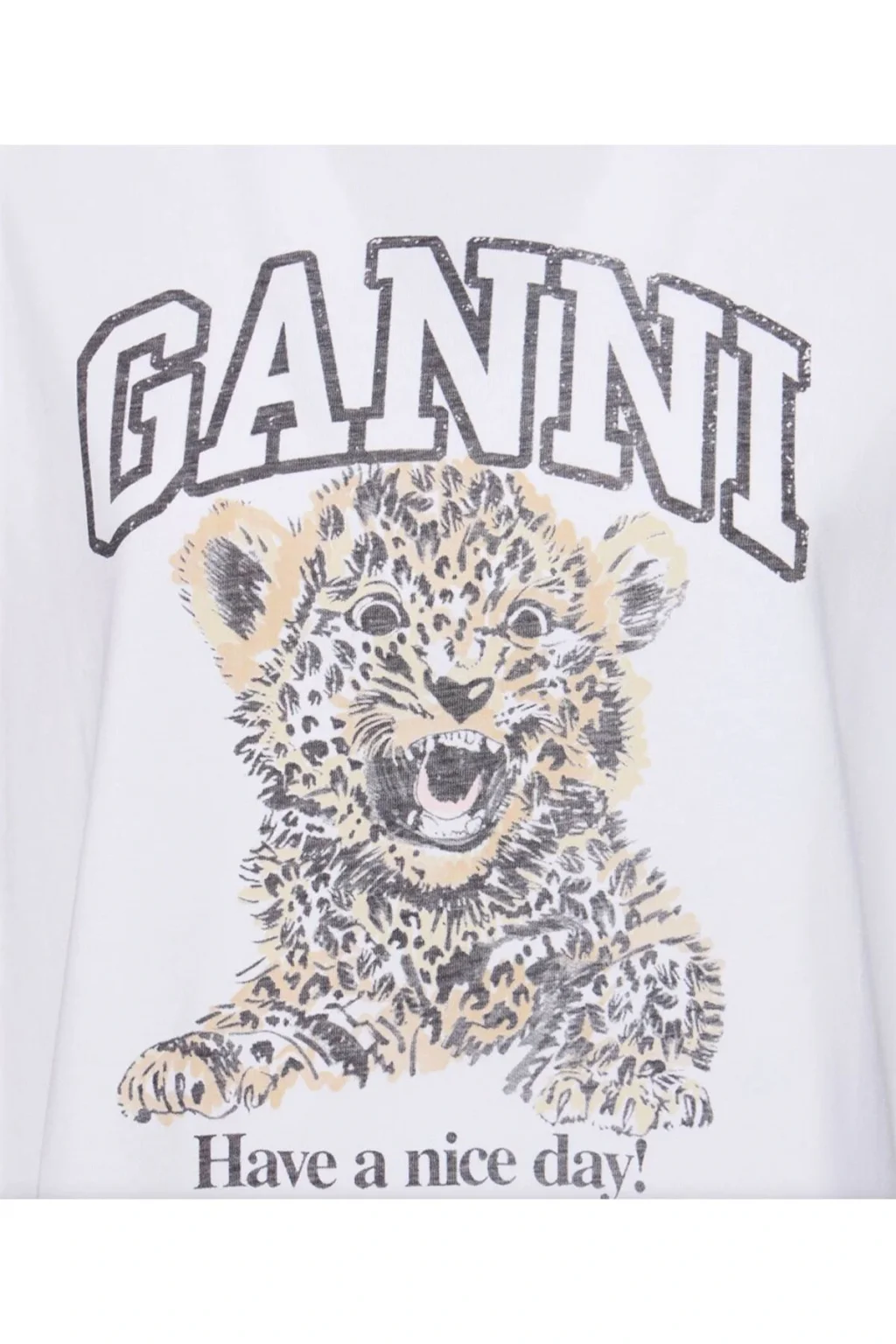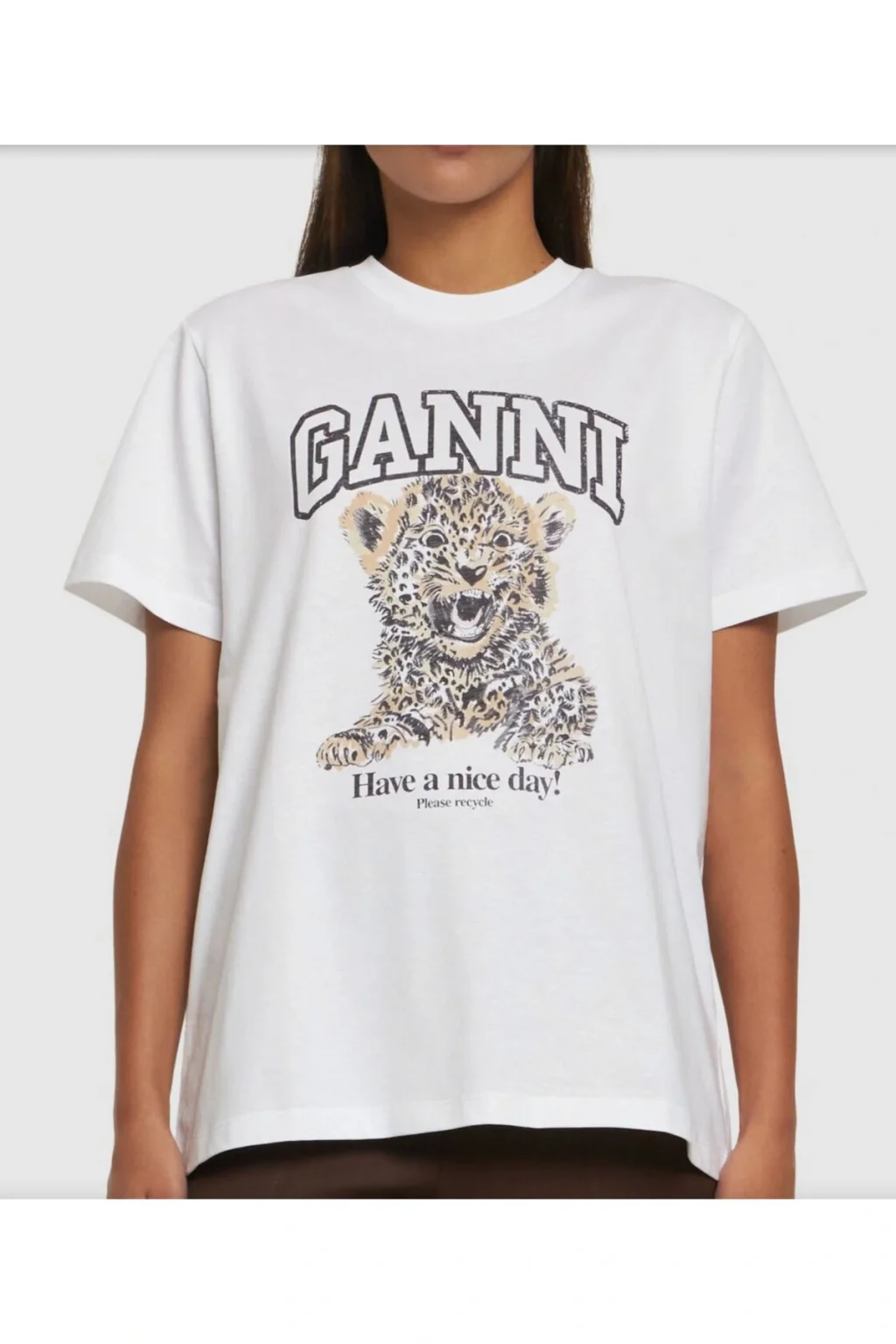 Gannı Beyaz Basic Jersey Leopar Tişört