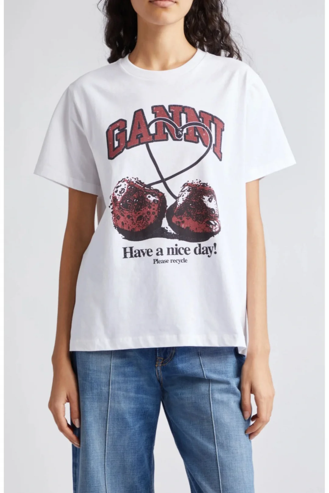 Ganni Kiraz Have A Nice Day Tişört