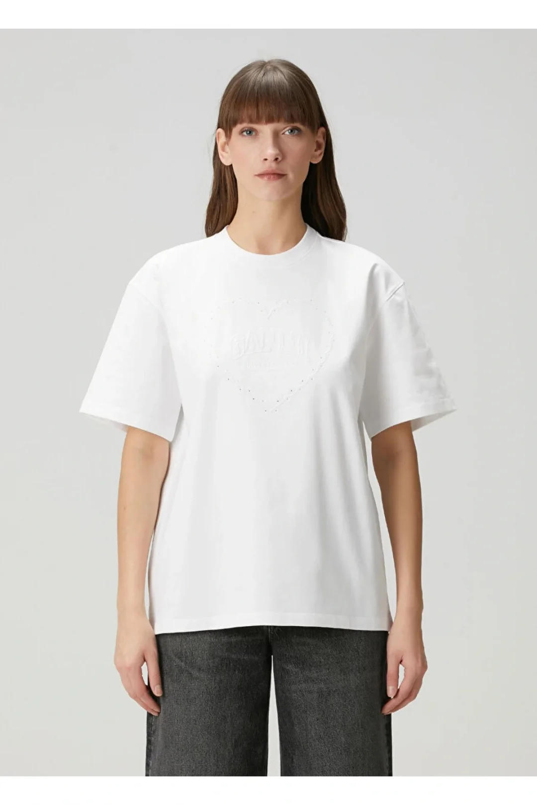 Marka Muadili Parlak Taşlı Beyaz T-Shirt – Şık ve Rahat Tasarım, Kadın Yaz Modası