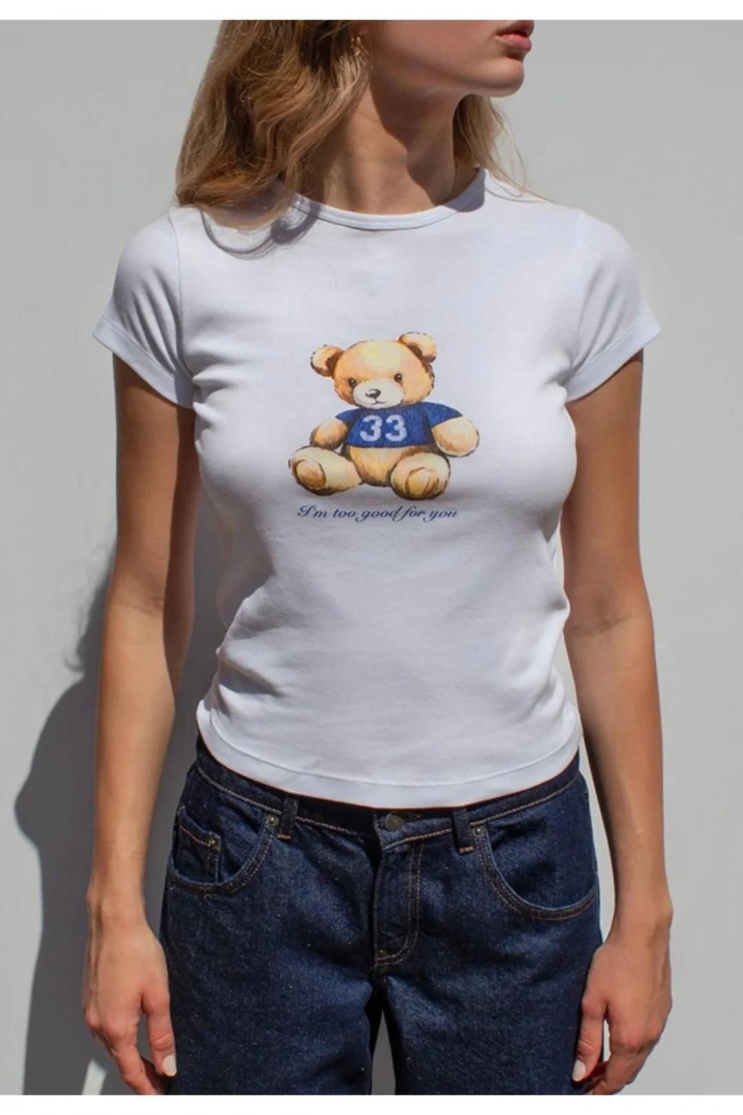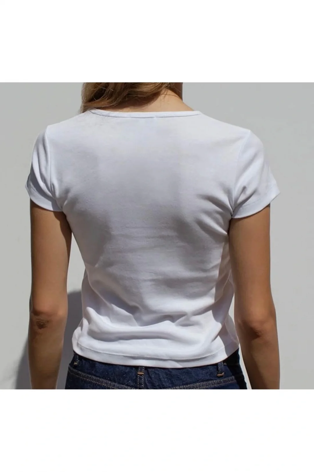 Marka Muadili Parlak Taşlı Beyaz T-Shirt – Şık ve Rahat Tasarım, Kadın Yaz Modası