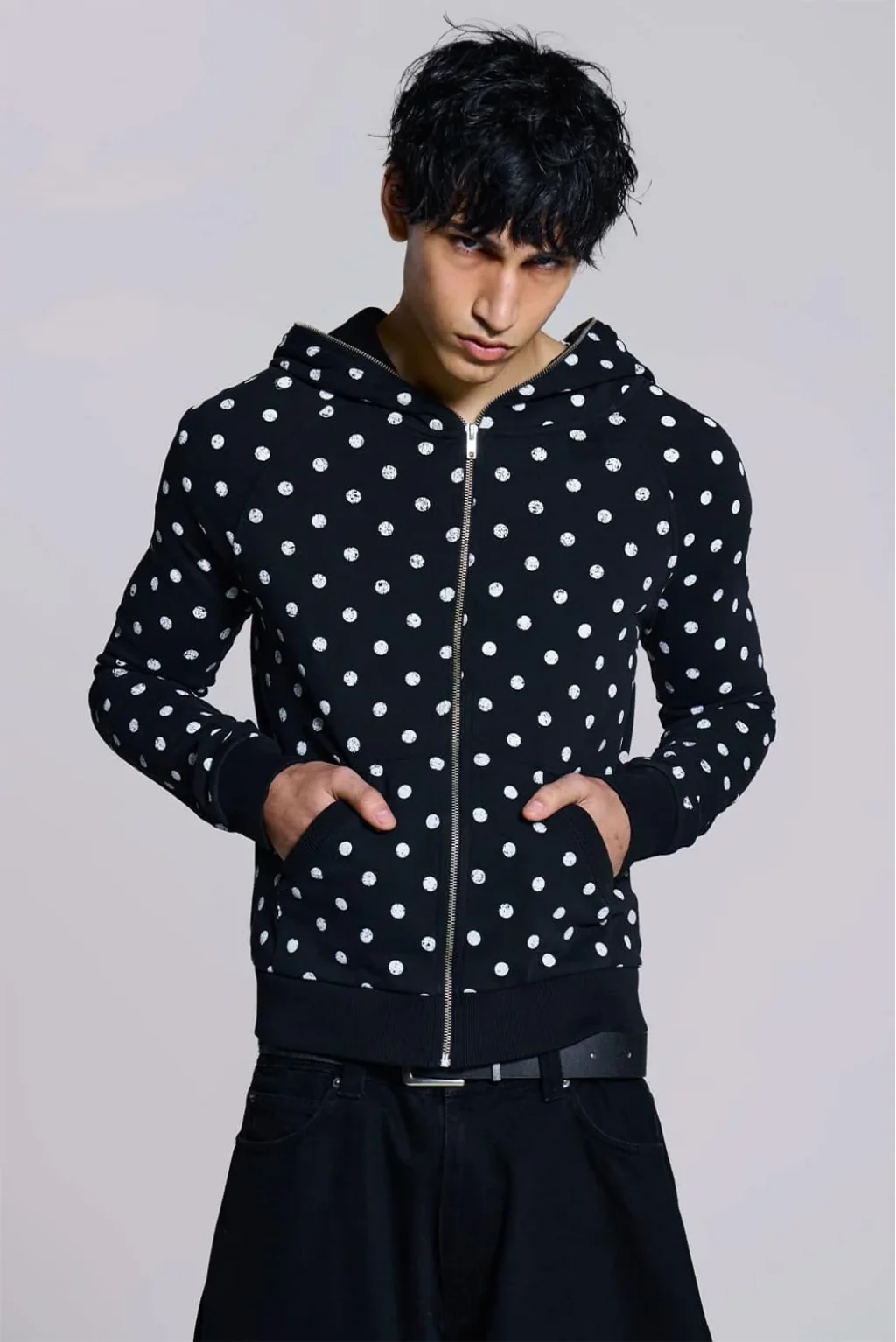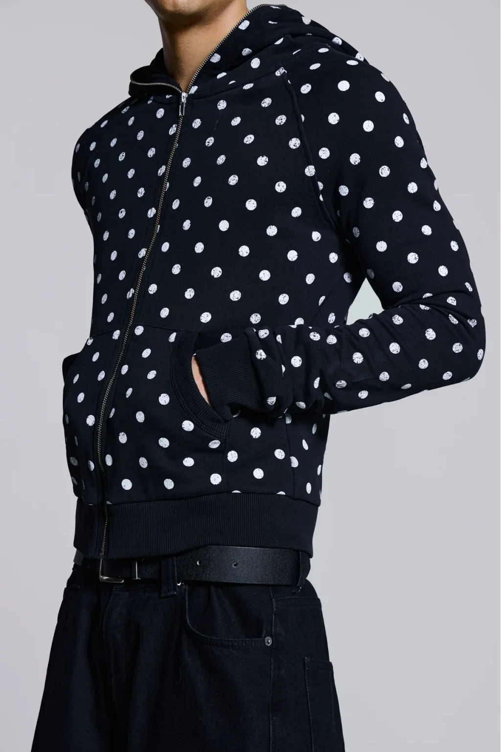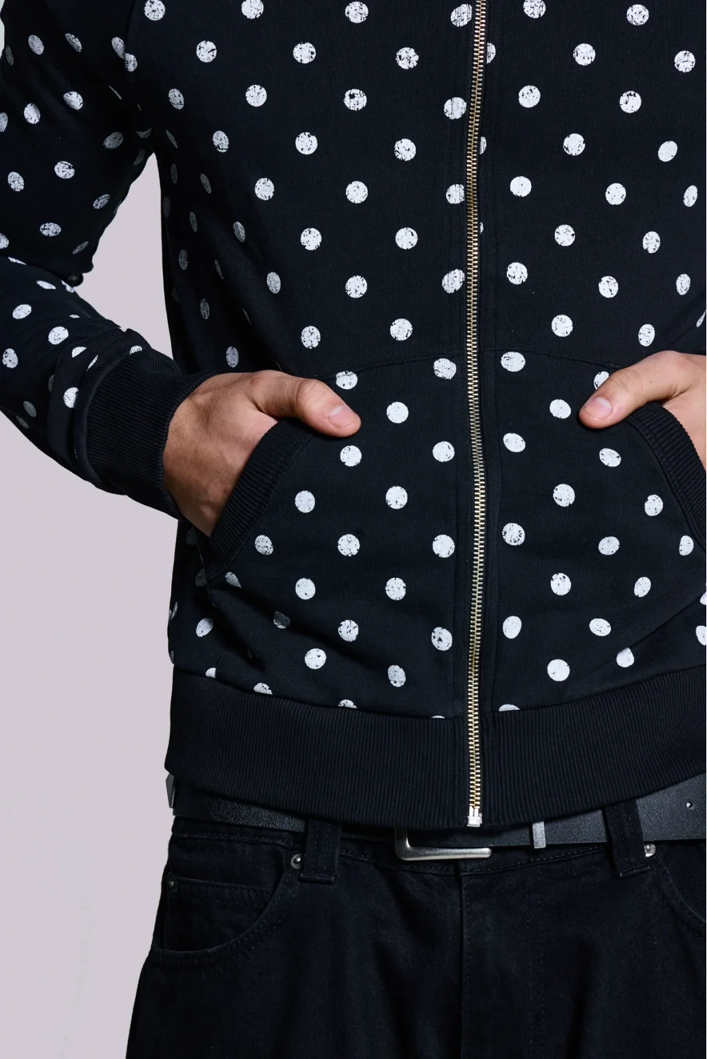 Jd Siyah Puantiyeli Kapüşonlu Sweatshirt&mono Black Polkadot Hoodie