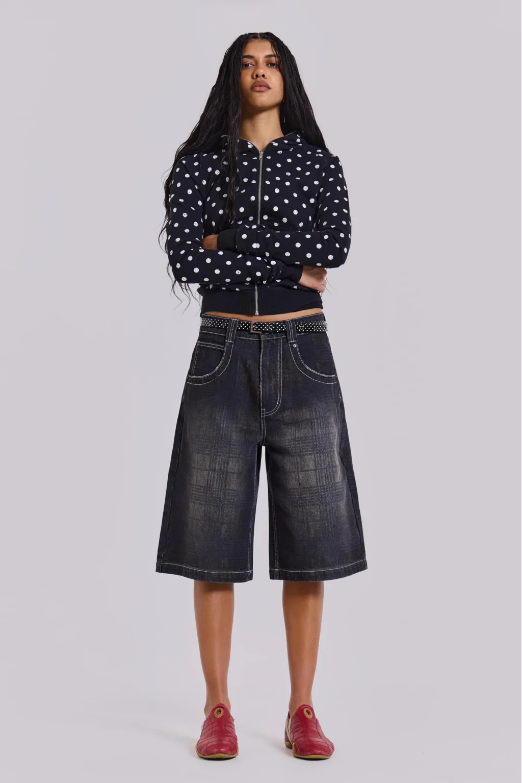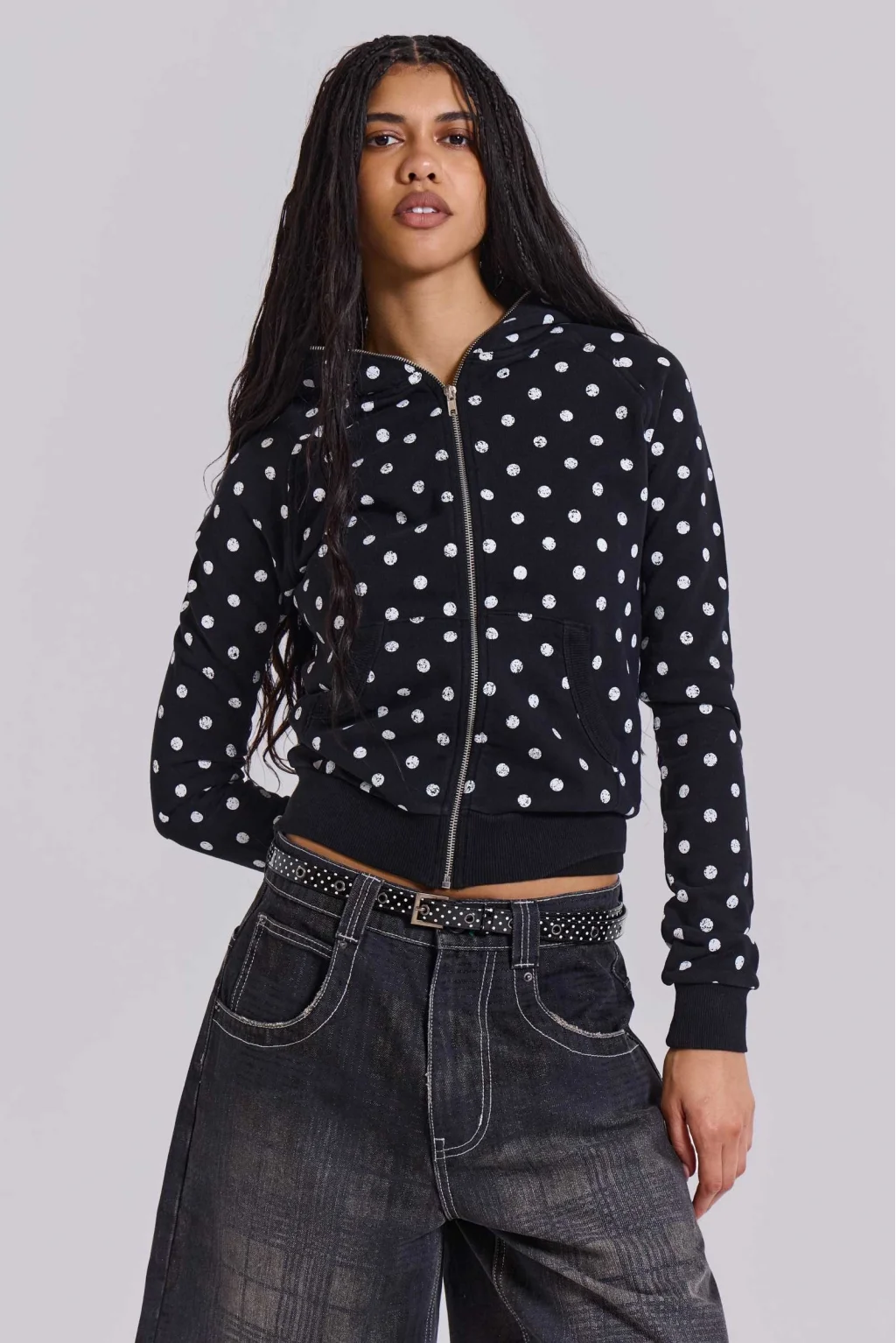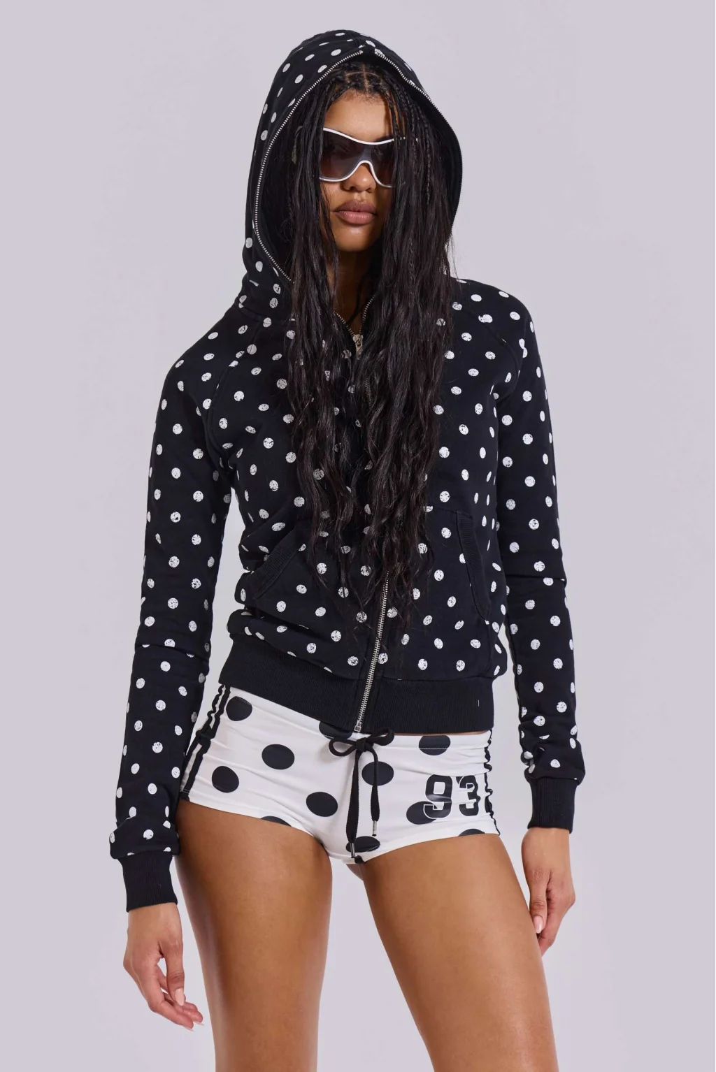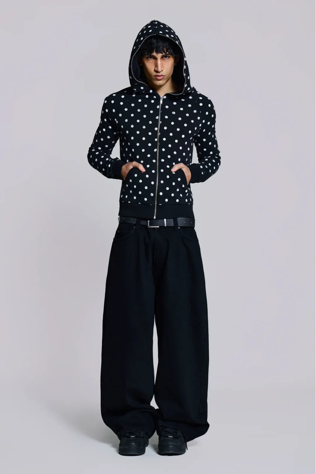 Jd Siyah Puantiyeli Kapüşonlu Sweatshirt&mono Black Polkadot Hoodie