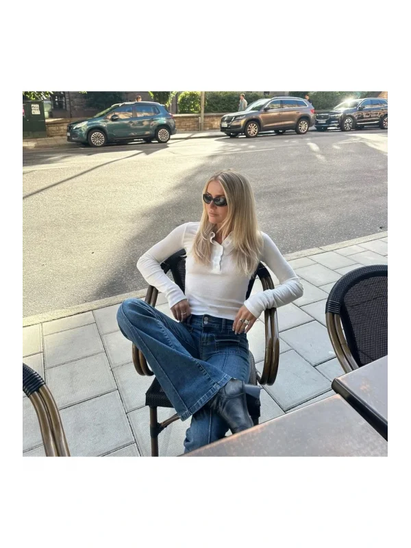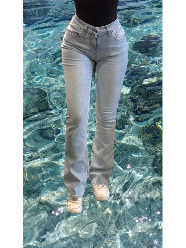 Y2K Retro Düşük Bel Paça Yırtmaçlı Açık Mavi Bootcut Jean Pantolon