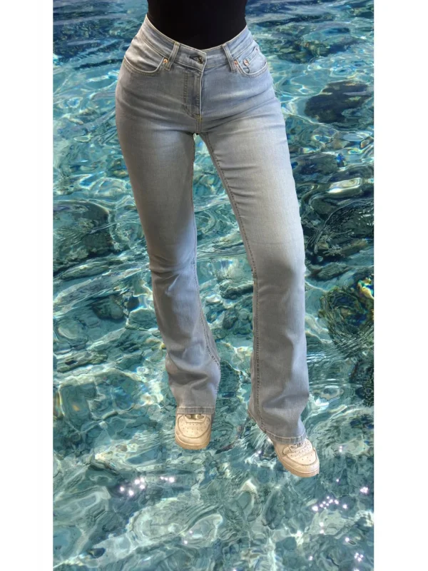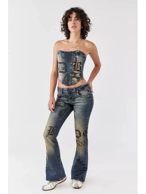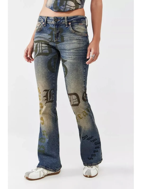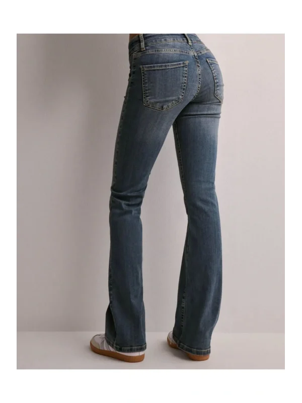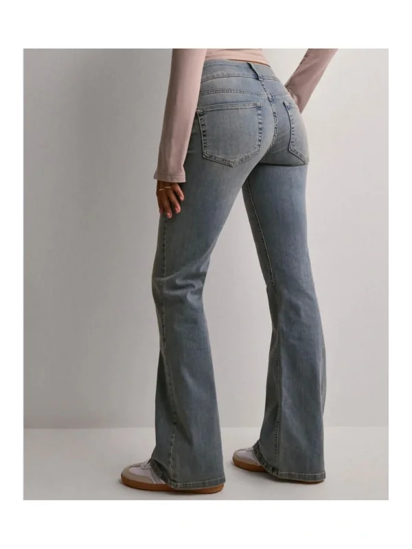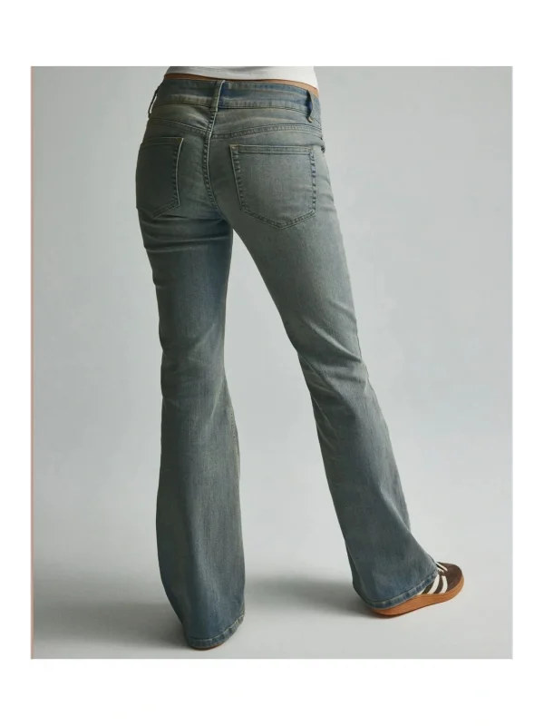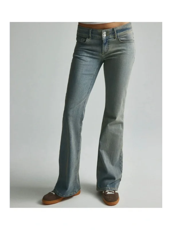 Düşük Bel Mavi Yıkamalı Denim Flare Pantolon