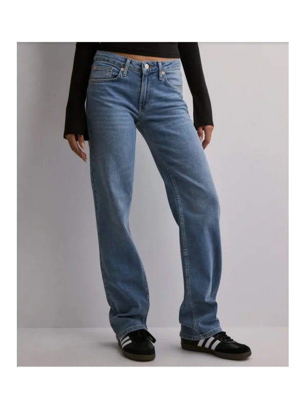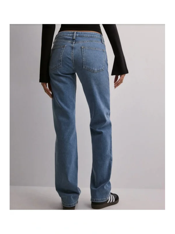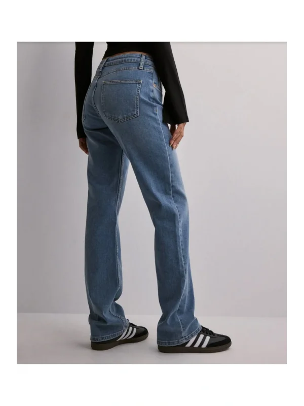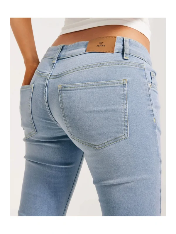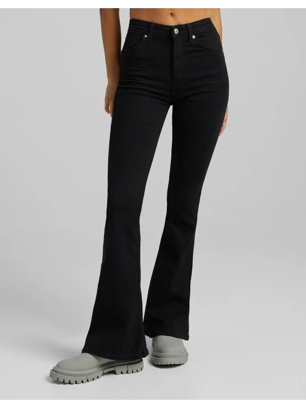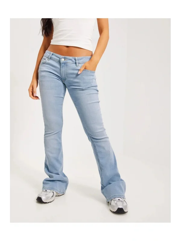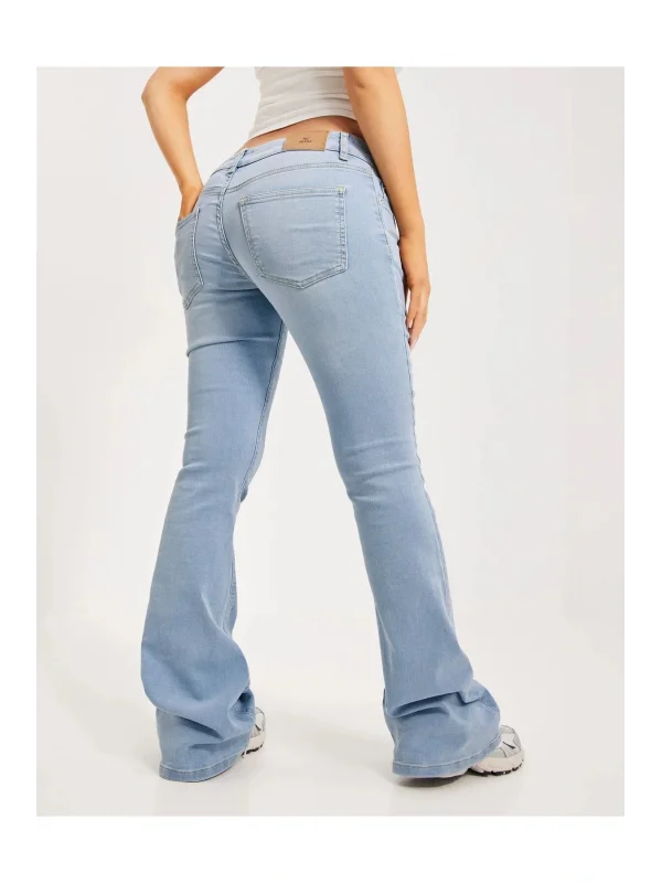 Düşük Bel Mavi Yıkamalı Denim Flare Pantolon