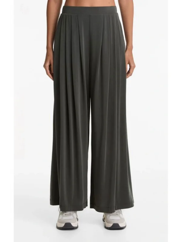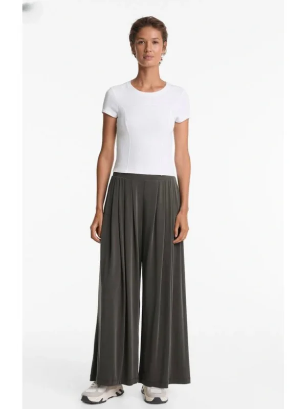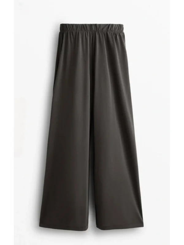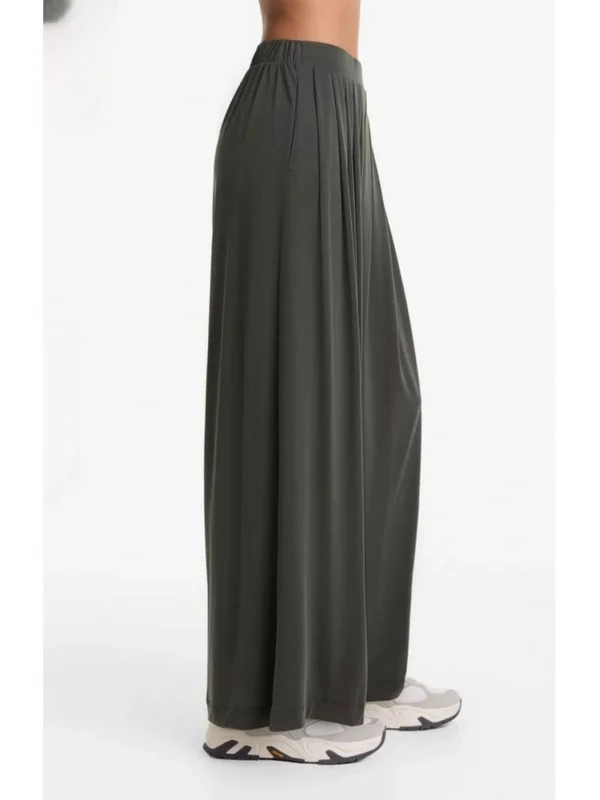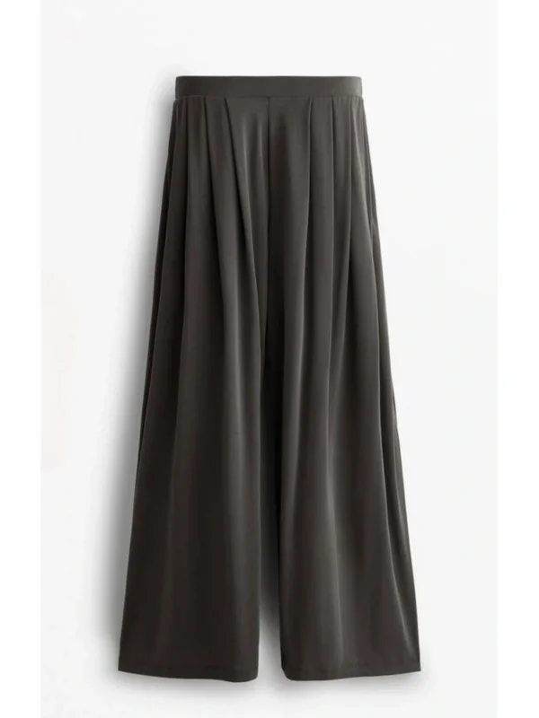 Kadın Yüksek Bel Pileli Füme Modal Karışımlı Bol Paça Uzun Pantolon