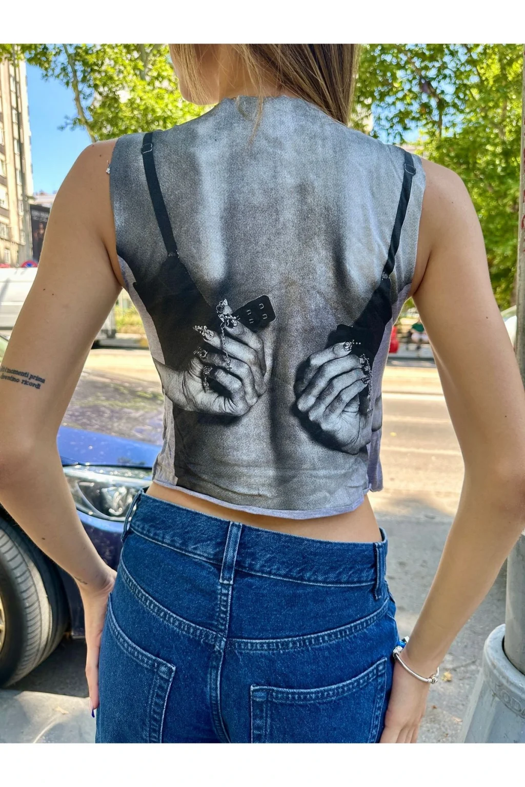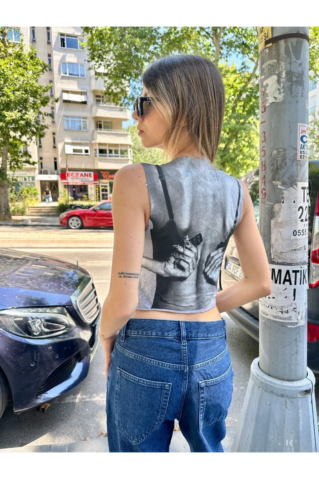 Dantel Kirazlı Fiyonk Crop Tshirt
