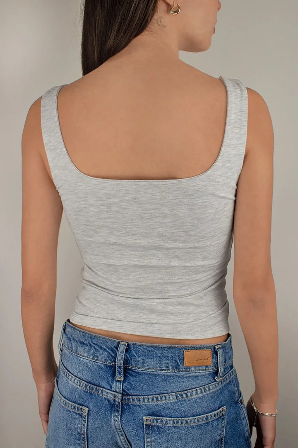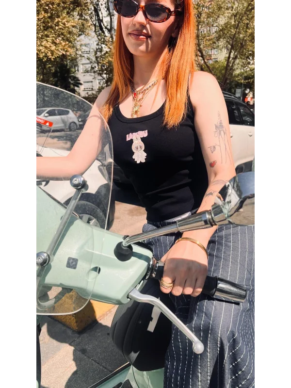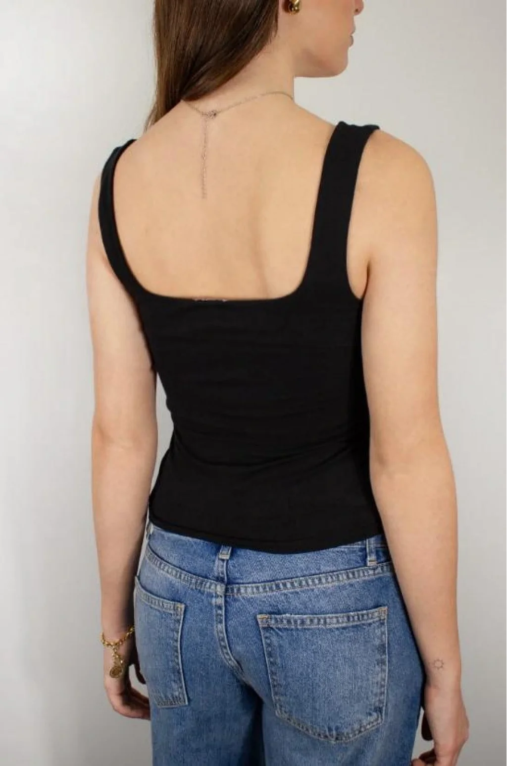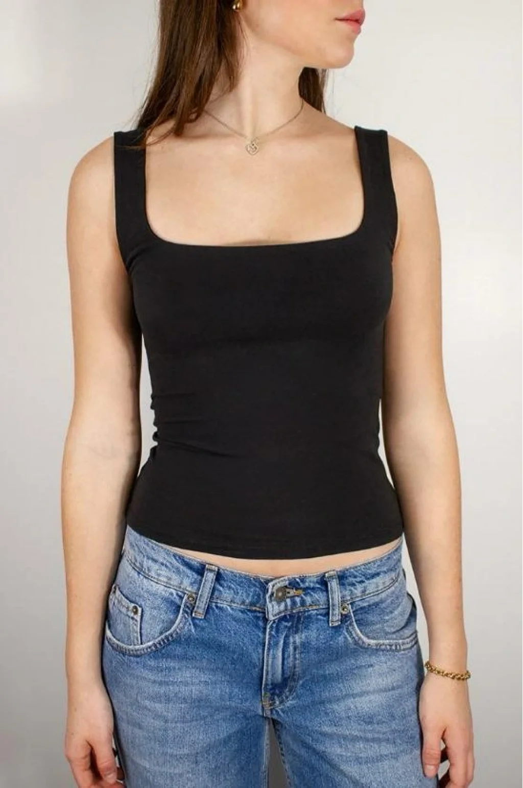 Zarif ve modern kare yaka detayı ile boyun ve omuz hattını öne çıkarır; kolye gibi aksesuarlarla uyum sağlar.