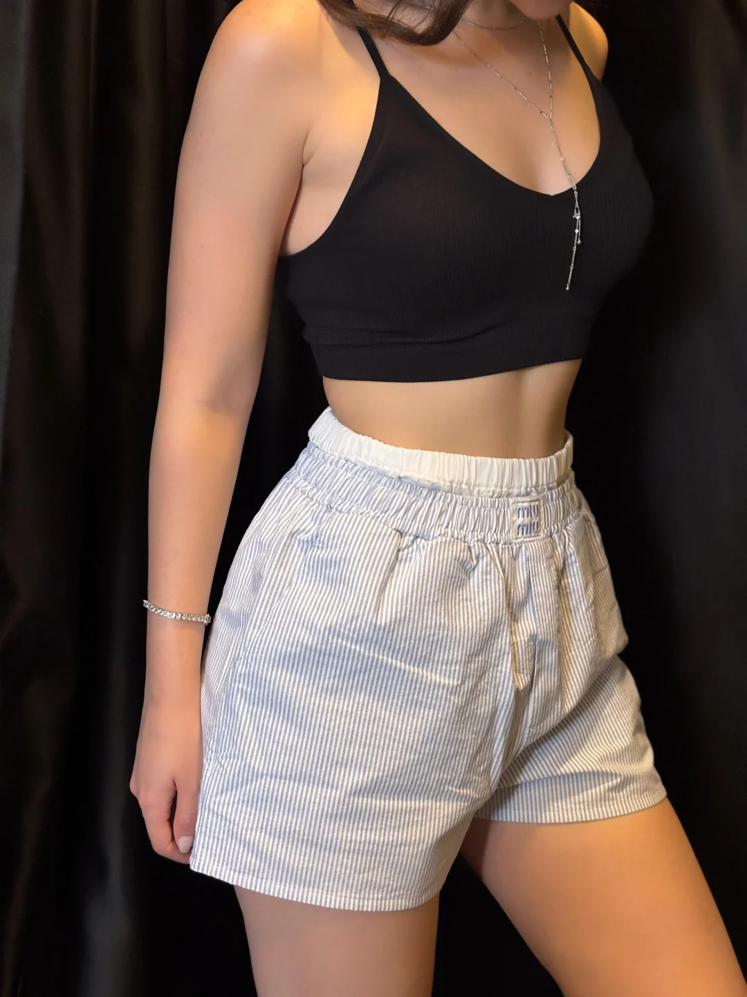 Şıklık ve rahatlığı bir araya getiren bu mavi-beyaz çizgili kadın şort modeli, yaz aylarında gardırobunuzun favorisi olmaya aday. Hafif pamuklu kumaşı sayesinde nefes alır ve terletmez. Bel kısmındaki geniş lastik yapısı ile gün boyu konfor sağlar. Spor, günlük veya ev kombinlerinde rahatlıkla kullanılabilir.
