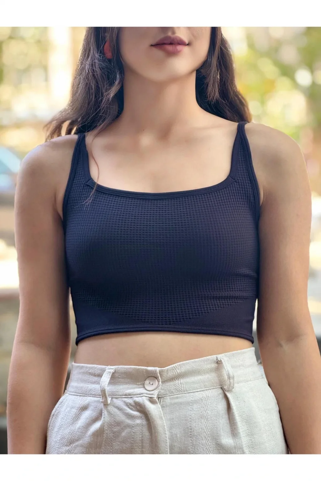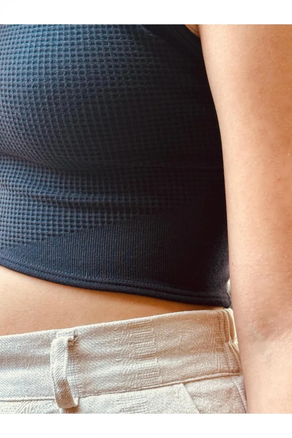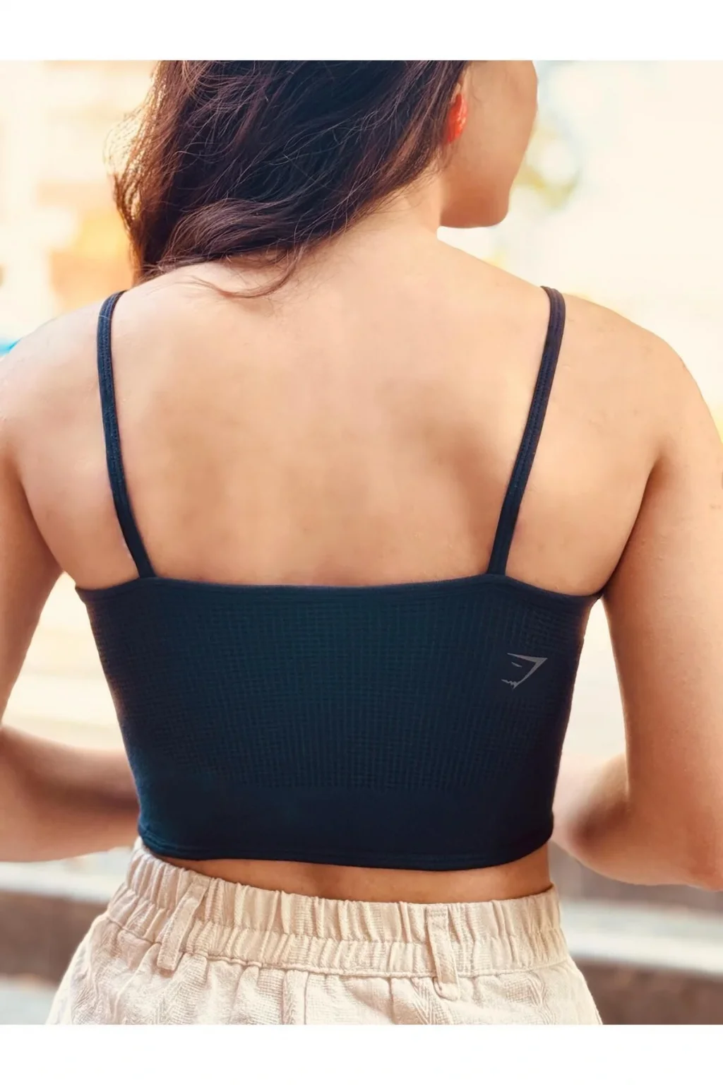 Seamless bralet hem spor hem de günlük kullanım için mükemmel bir konfor sunar.; Siyah rengiyle zarif bir görünüm sağlayan bu seamless (dikişsiz) spor sütyeni, dinlenme günlerinizin ve hafif tempolu aktivitelerinizin vazgeçilmez parçası olacak.; Ürün özellikleri: Modern ve şık kısa kesim (cropped fit) Yumuşak dokuya sahip waffle ve rib örgü kumaş Kare yaka tasarımı ile sade ve stil sahibi görünüm Vücudu kavrayan kıvrımlı etek ucu Dikişsiz (seamless) yapısı ile maksimum konfor Göğüs kısmında gymshark logosu (ısı transferli) Yüksek kaliteli kumaş: %75 modal, %14 naylon, %11 elastan Etiketsiz yapı – ten dostu ve rahatsız etmeyen tasarım - kısa kesim - waffle ve nervürlü örgü yapısı - sharkhead ısıyla yapıştırma logosu - kare yaka tasarımı - kavisli etek Kullanım alanları: Dinlenme günlerinde ev konforu Yoga, pilates ve düşük tempolu egzersizlerde rahatlık Günlük giyim kombinleriyle modern görünüm Beden bilgisi: Model 1: Boy 160 cm - Xs beden giymektedir.; Model 2: Boy 175 cm - M beden giymektedir