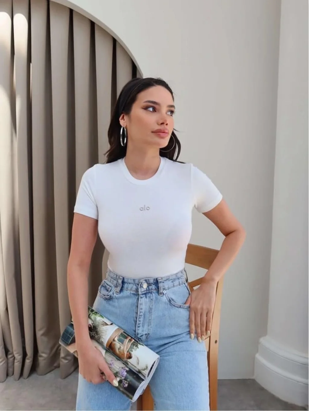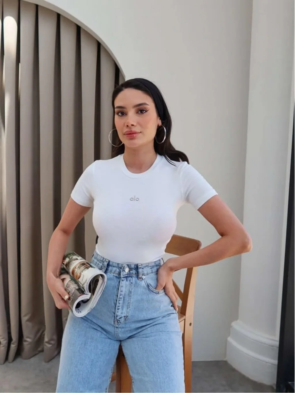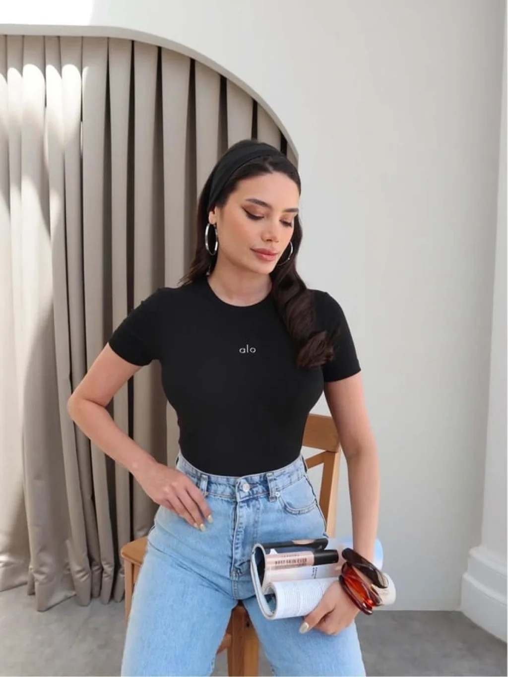 Basic tişört-bluz modeli, her tarz ve kombin ile uyumlu bir şekilde kullanılabilir.