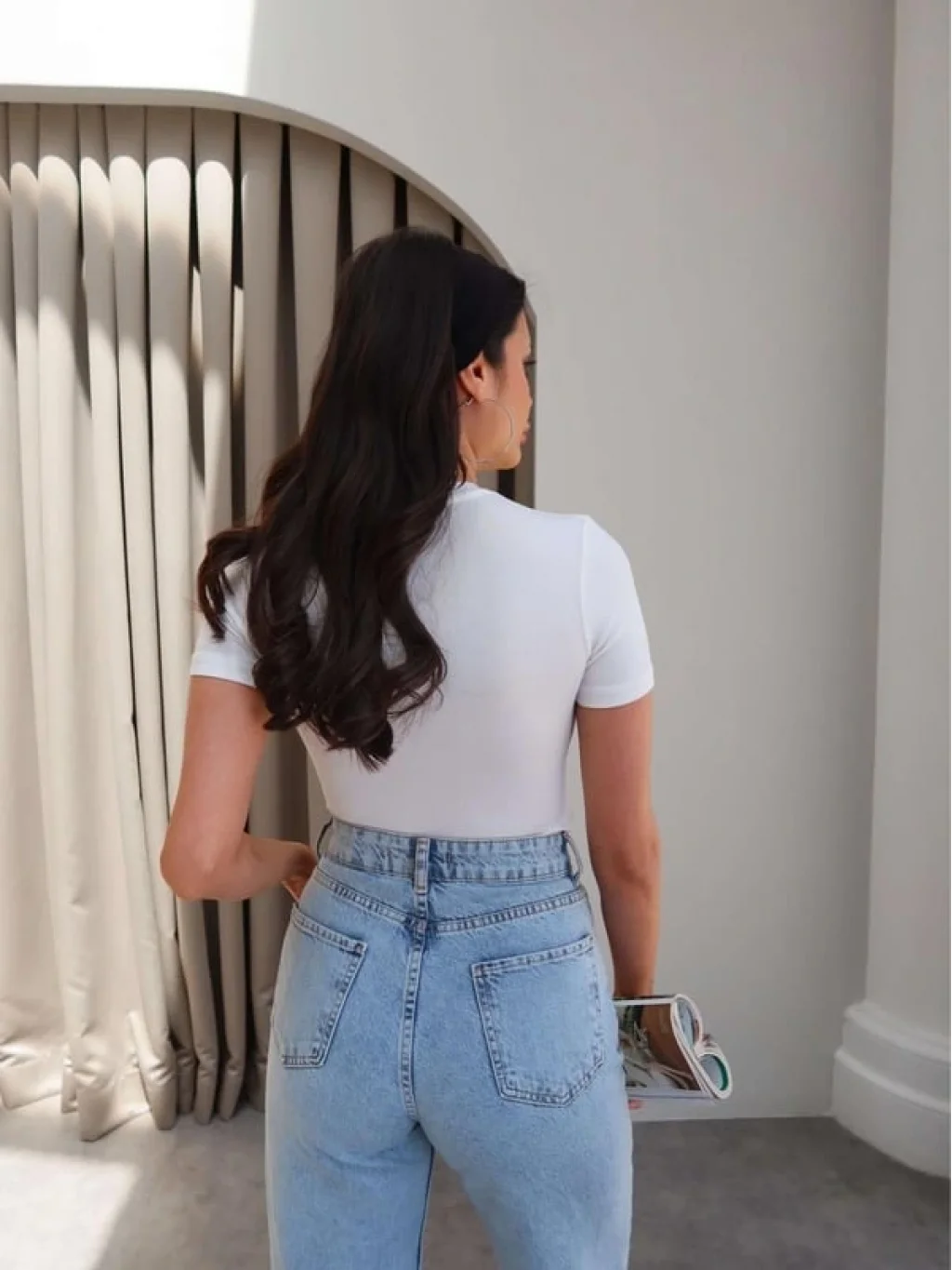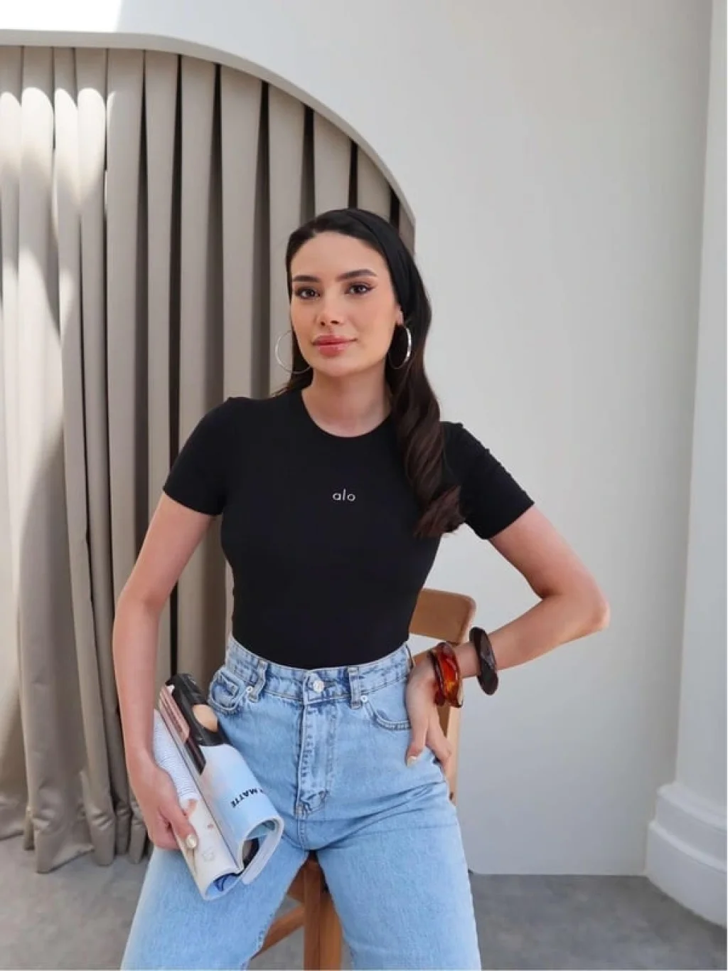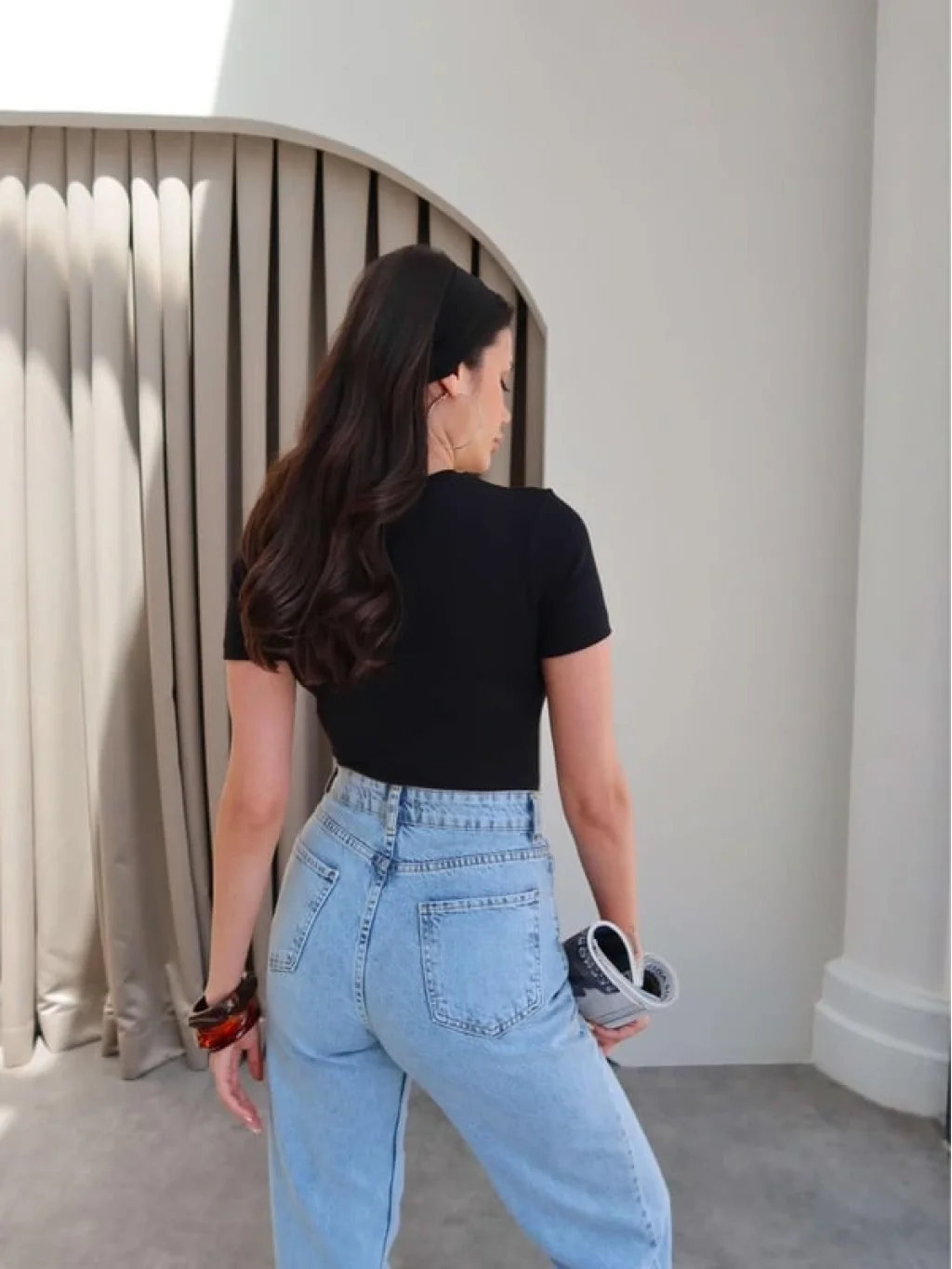 Basic tişört-bluz modeli, her tarz ve kombin ile uyumlu bir şekilde kullanılabilir.