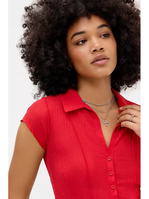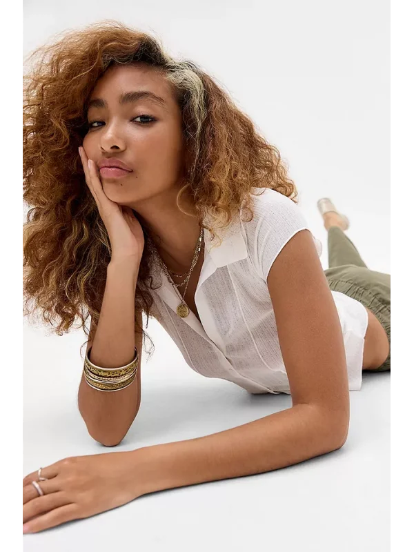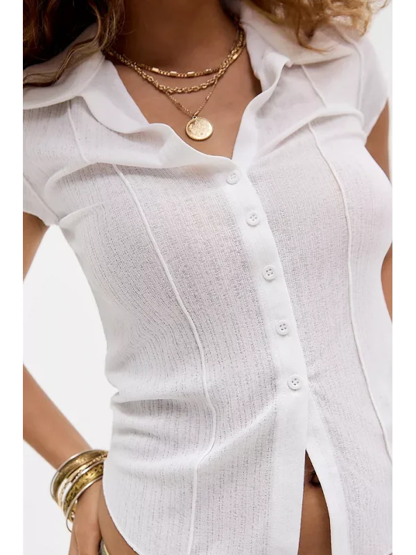 Feminen ve vintage havasıyla öne çıkan bu kısa kollu bluz, zarif detaylarıyla gardırobunuzun yıldız parçası olacak.