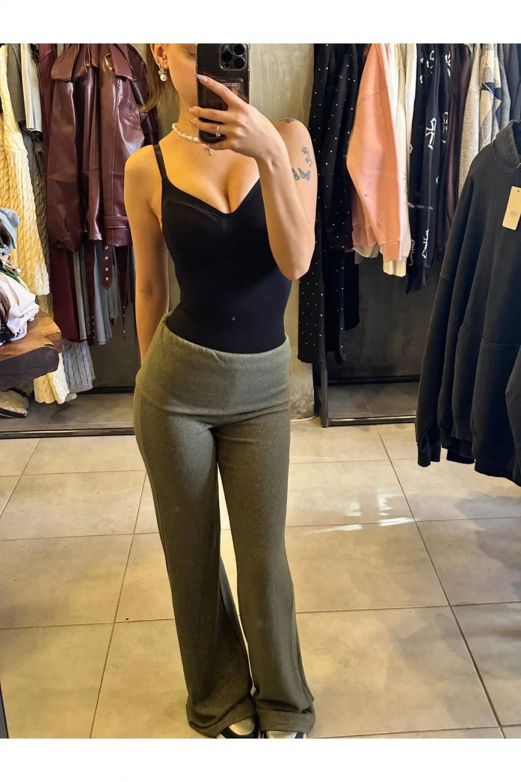 Katlanmış Bel Bantlı İspanyol Paça Pantolon