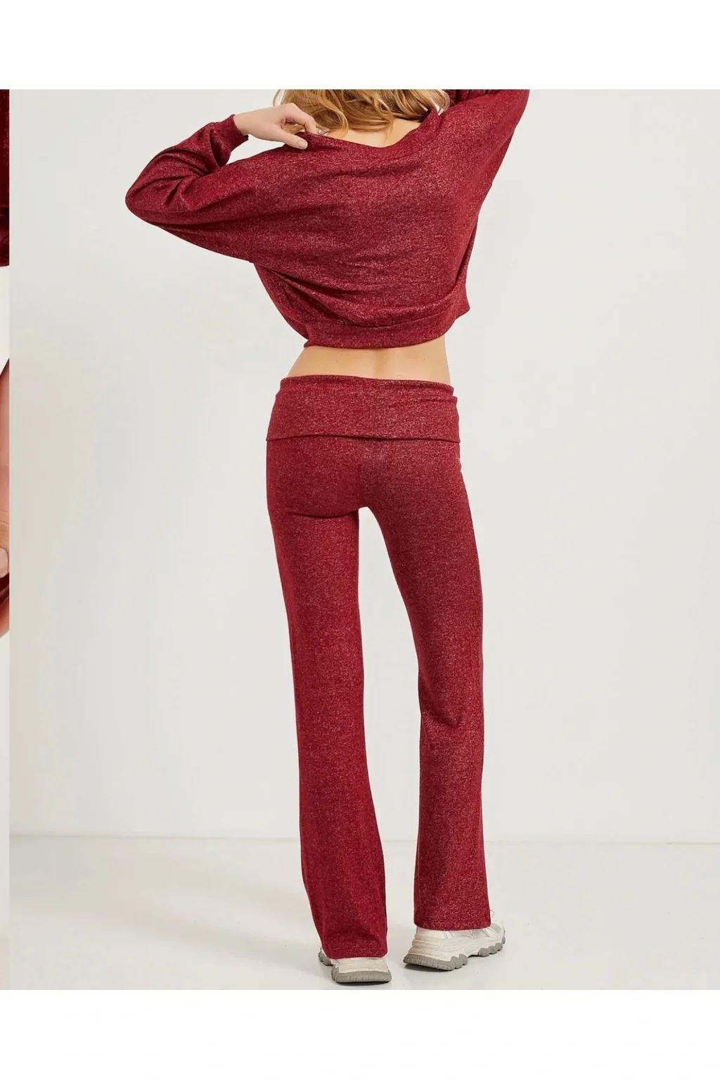 Kırmızı Katlanmış Bel Bantlı İspanyol Paça Pantolon