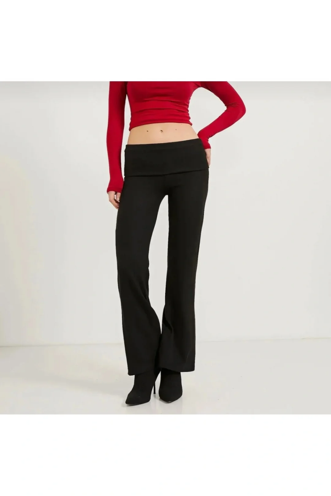 Siyah Düşük Bel İspanyol Paça Pantolon – Flare Stil Z