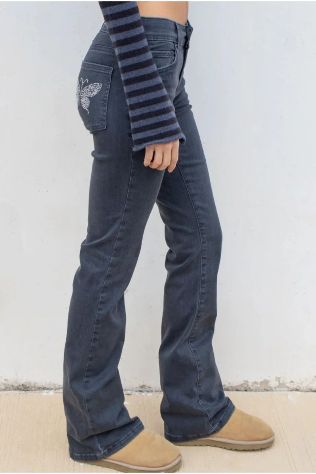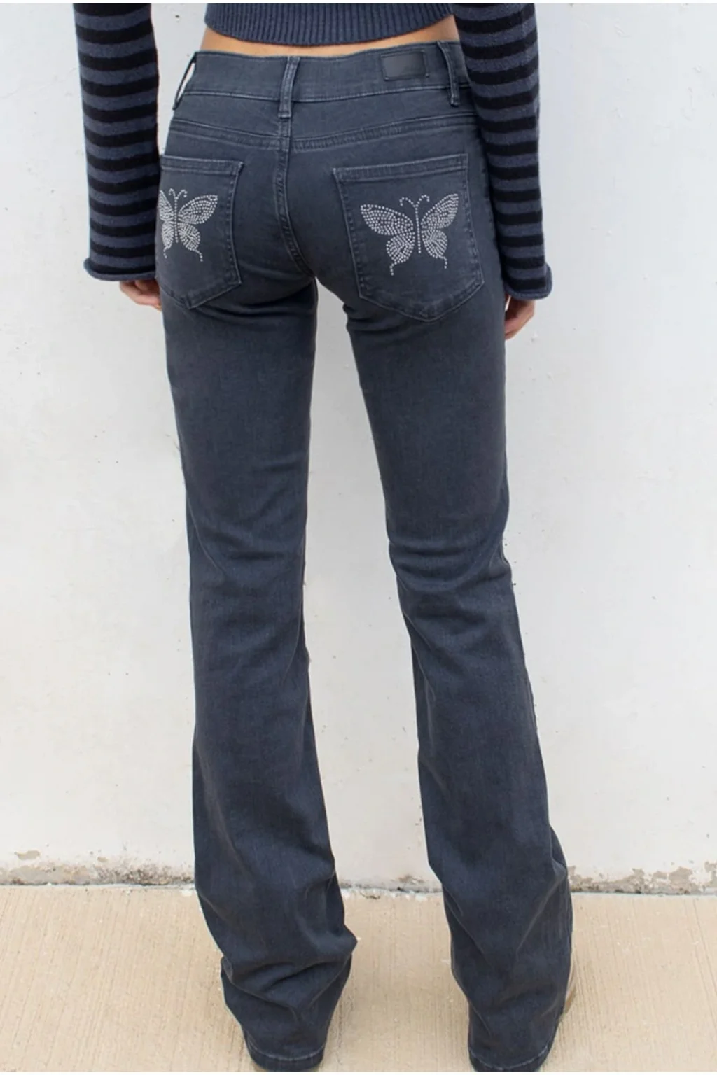 Kelebek Cepli Düşük Bel Kot Pantolon