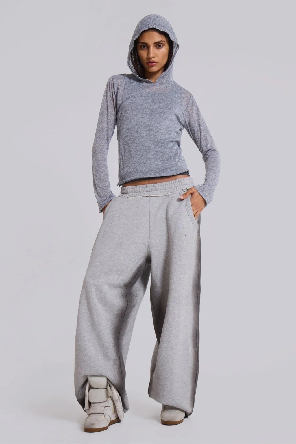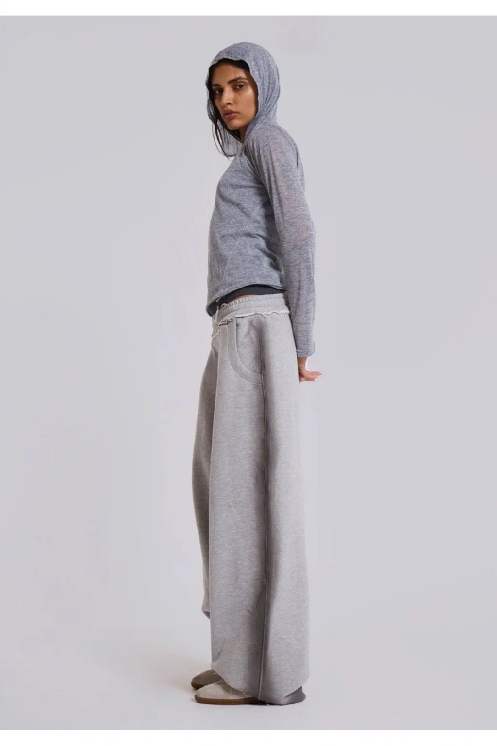 Bağcıklı Paça Detaylı Gri Bol Pantolon