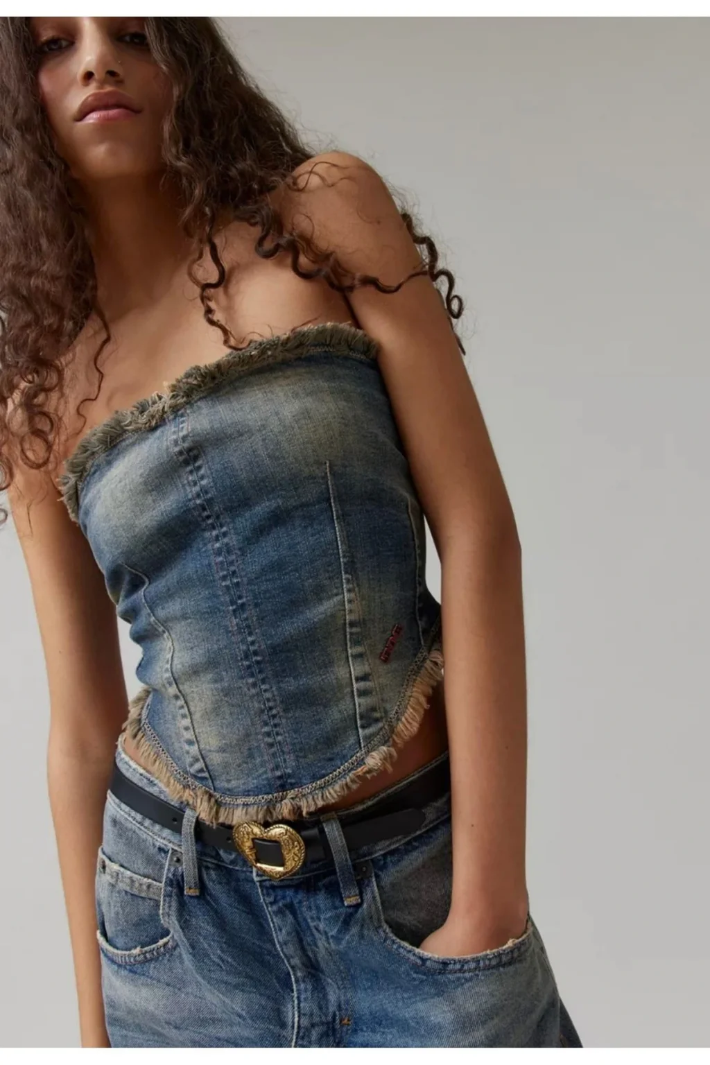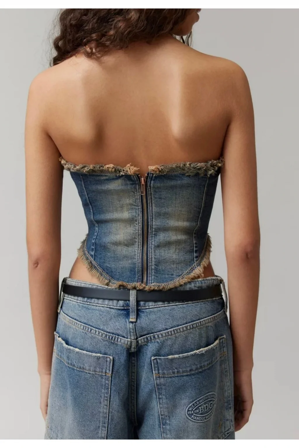 VibeGaia y2k Önü Drapeli Straplez Crop Top