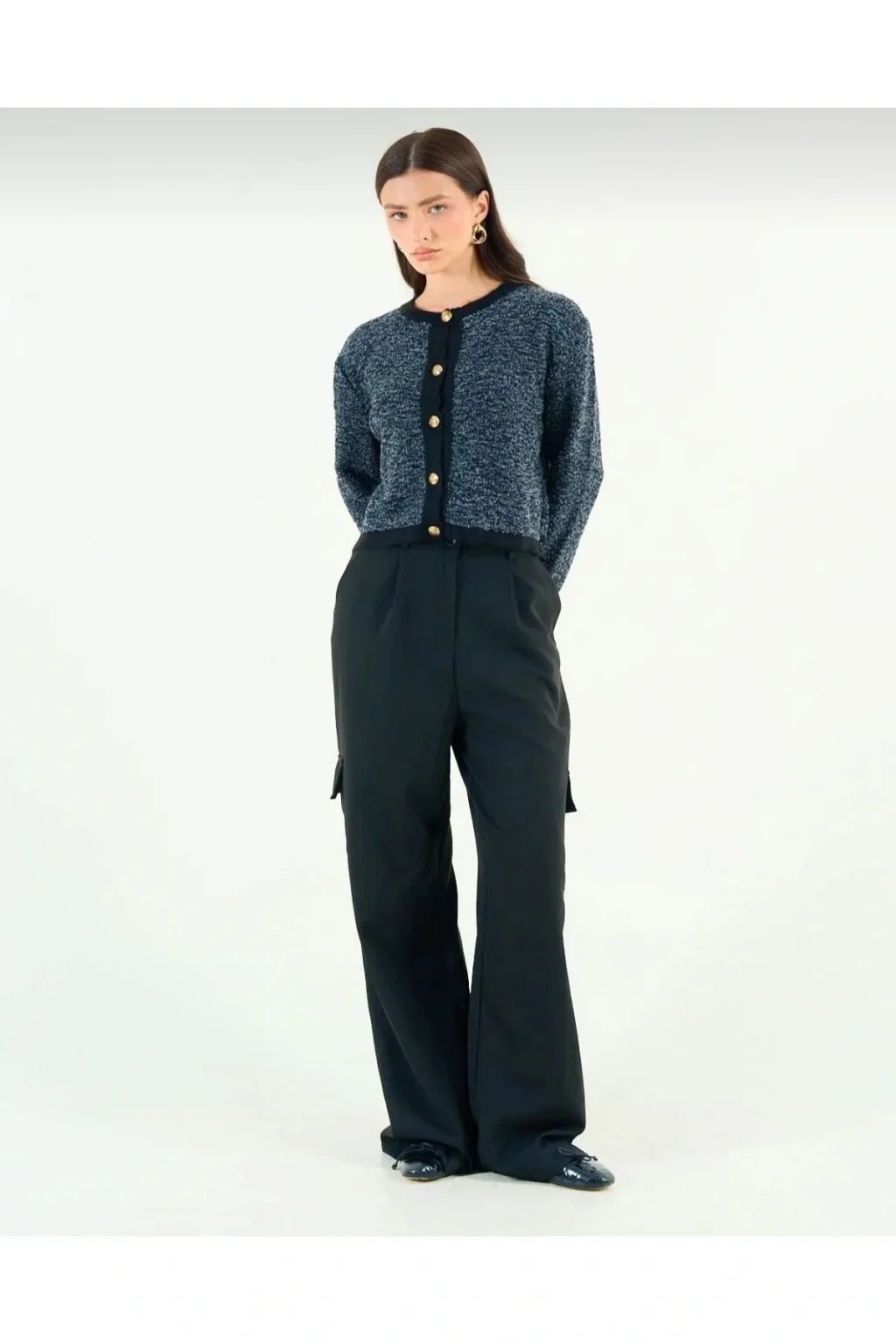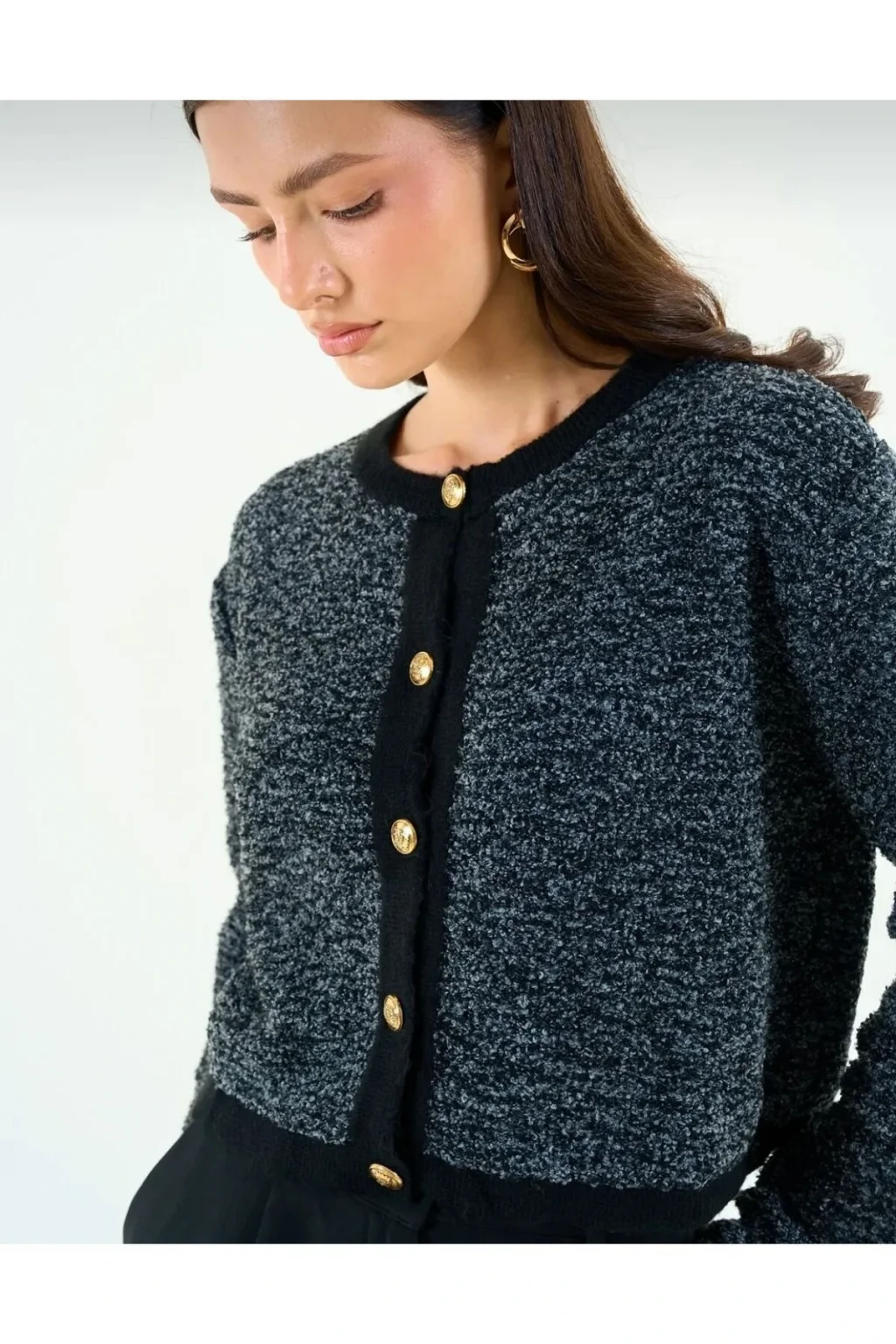 Altın Düğmeli Peluş Hırka
