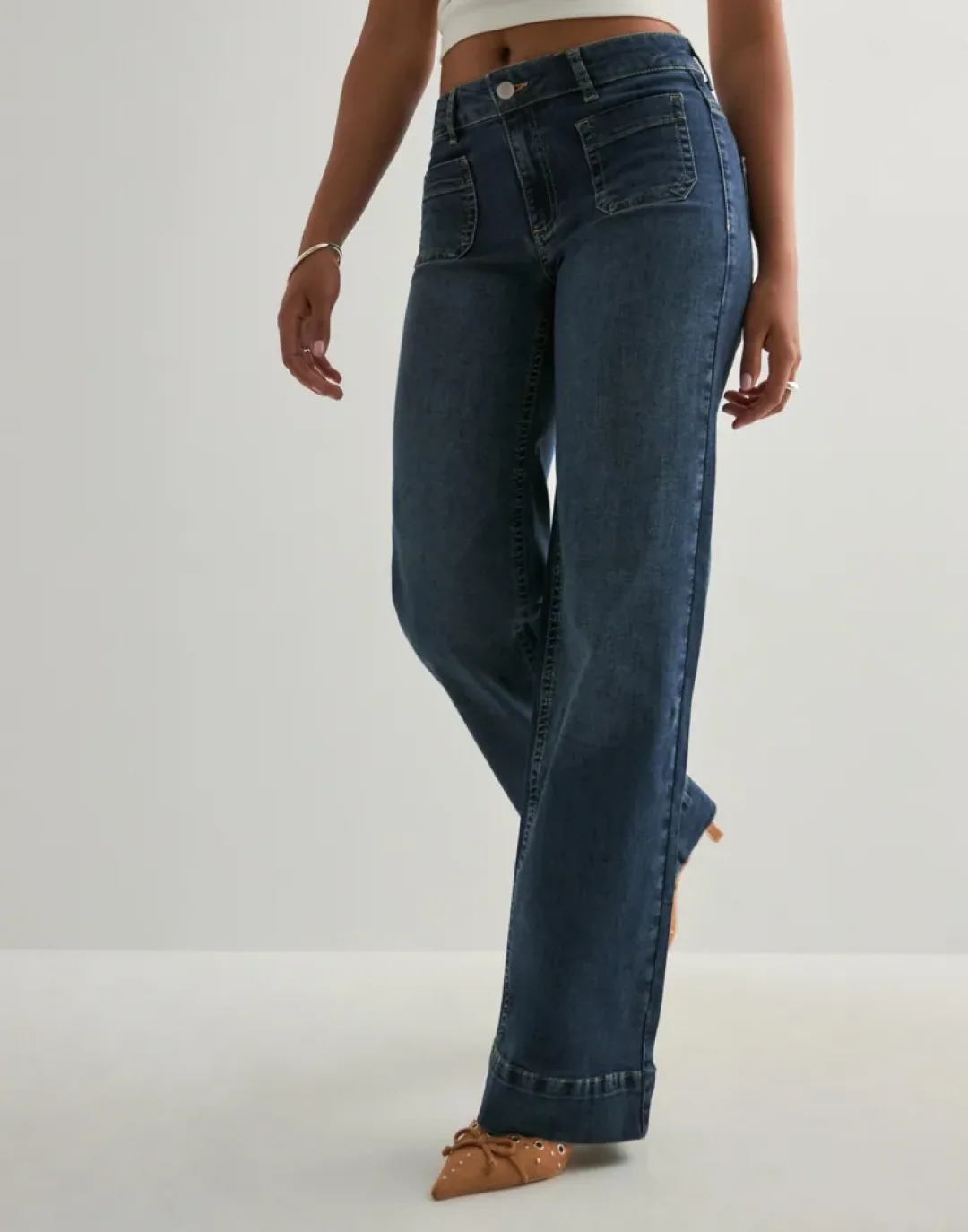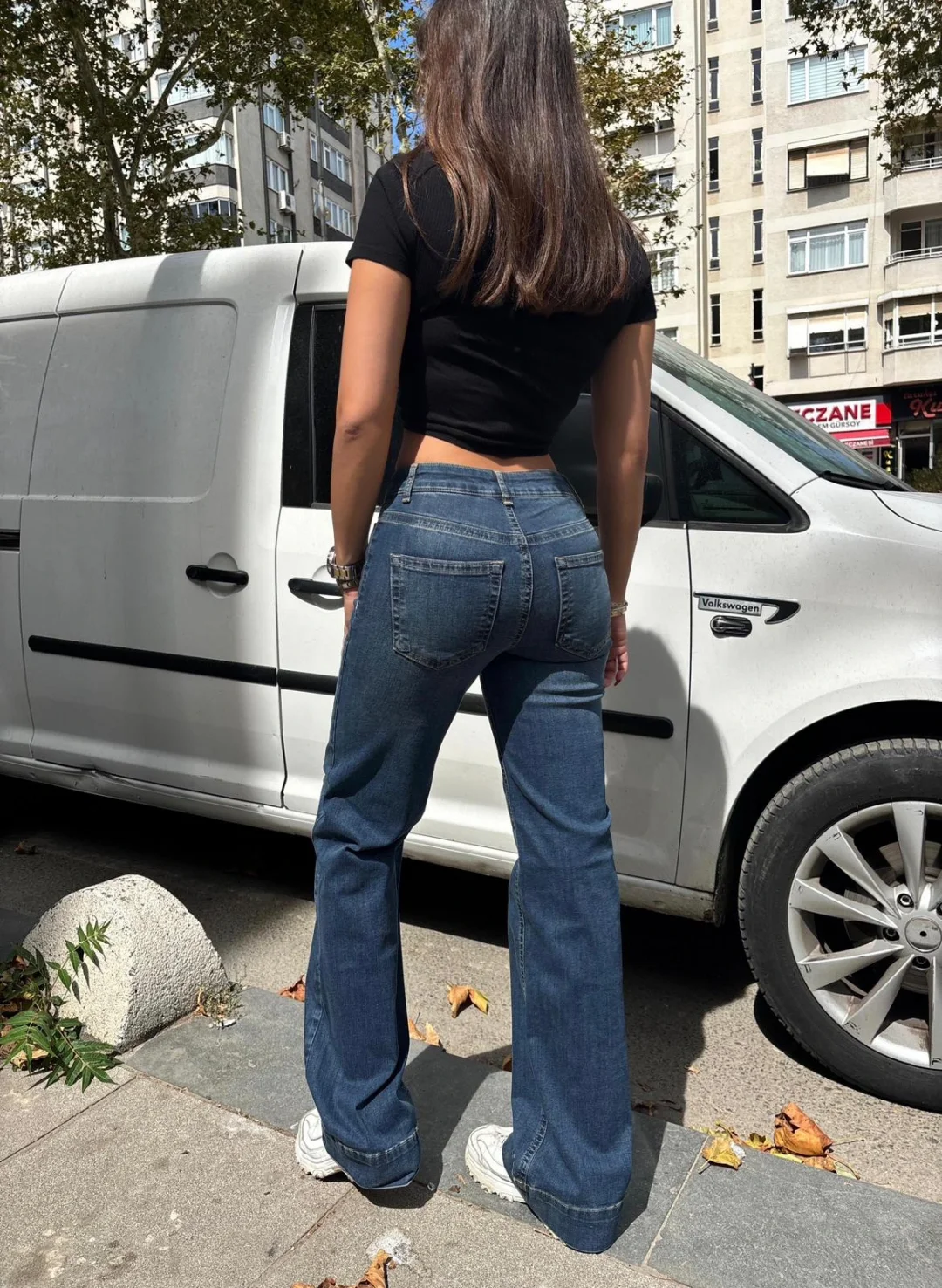 Mokşa’nın zamansız şıklığıyla tasarlanan orta bel slim bootcut jean, klasik denim dokusunu modern hatlarla buluşturur. Vücuda oturan üst kalıbı ve hafif genişleyen paça formu sayesinde dengeyi mükemmel şekilde yakalayan bir siluet oluşturur.