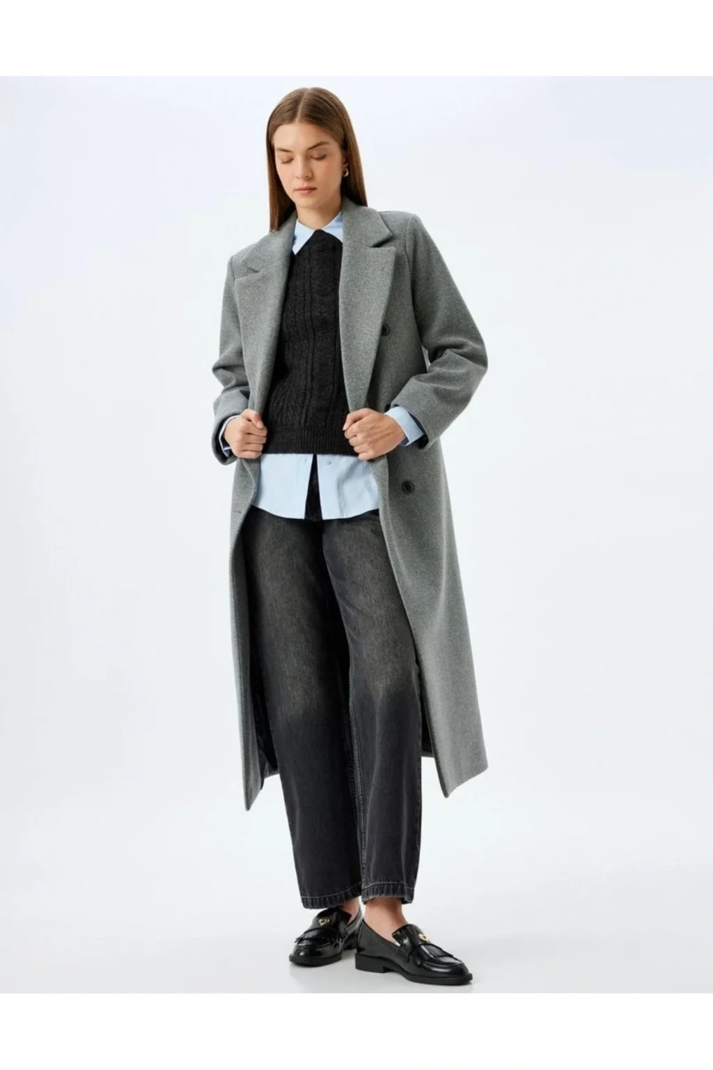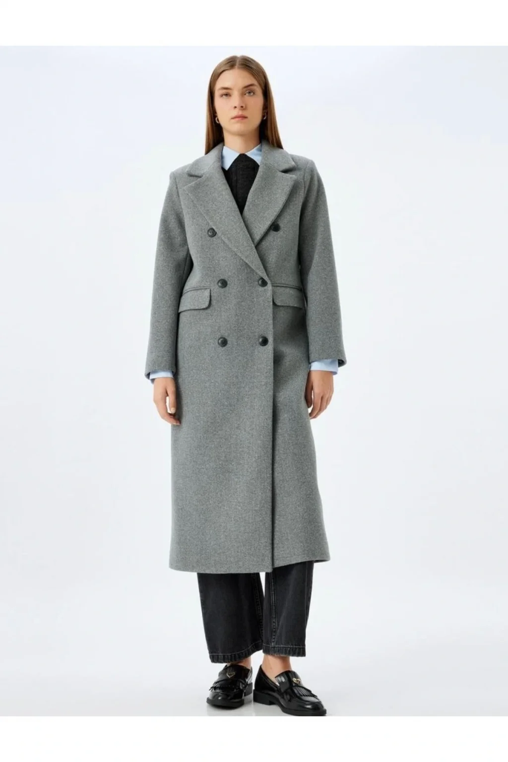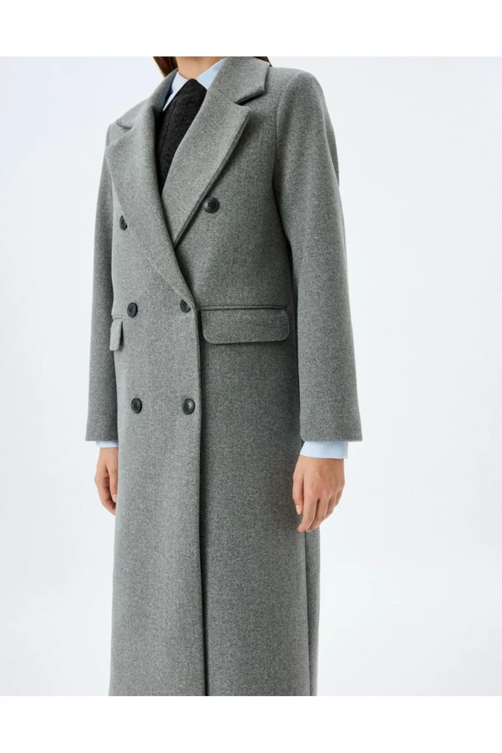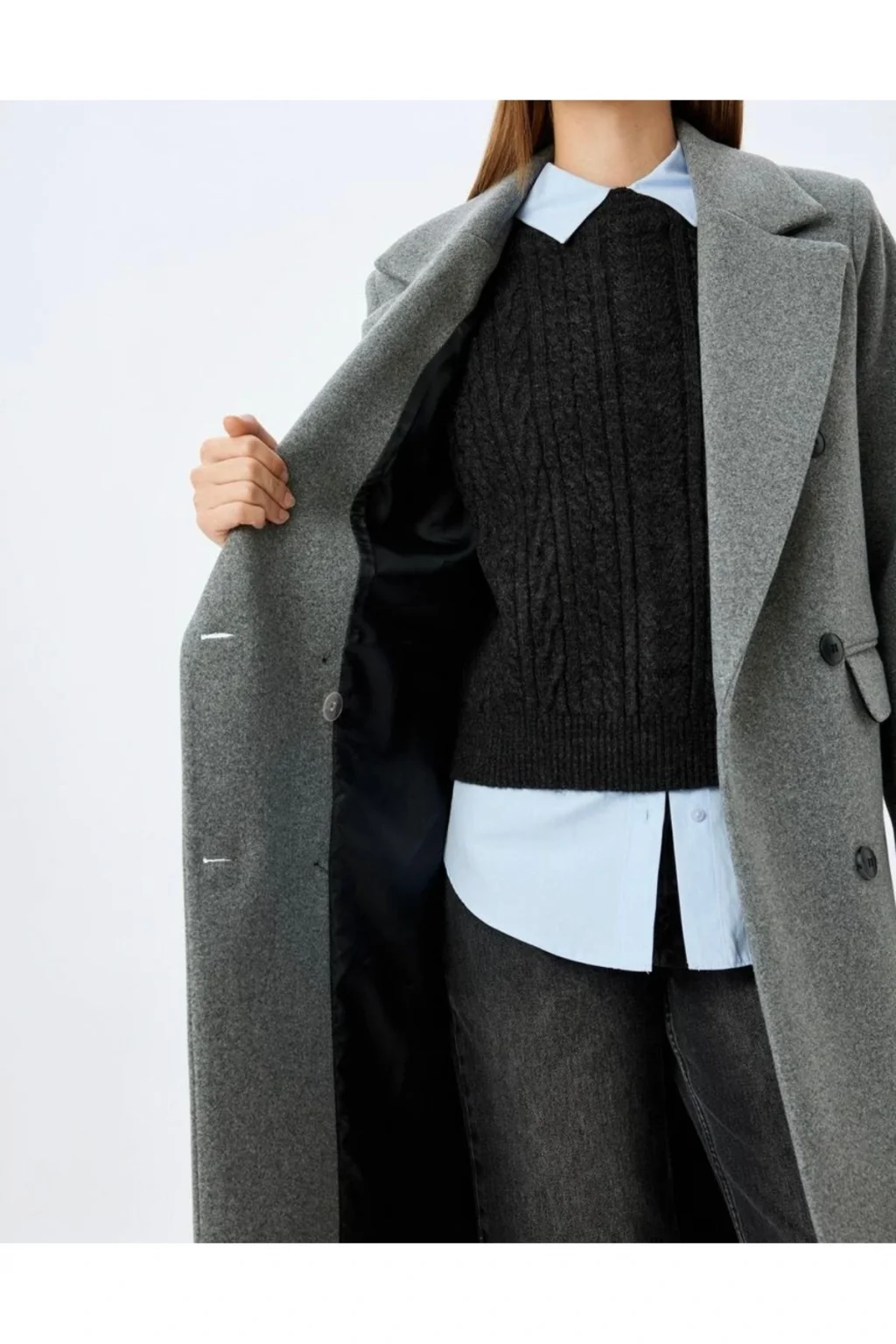 Kruvaze Yün Karışımlı Kaşe Kaban