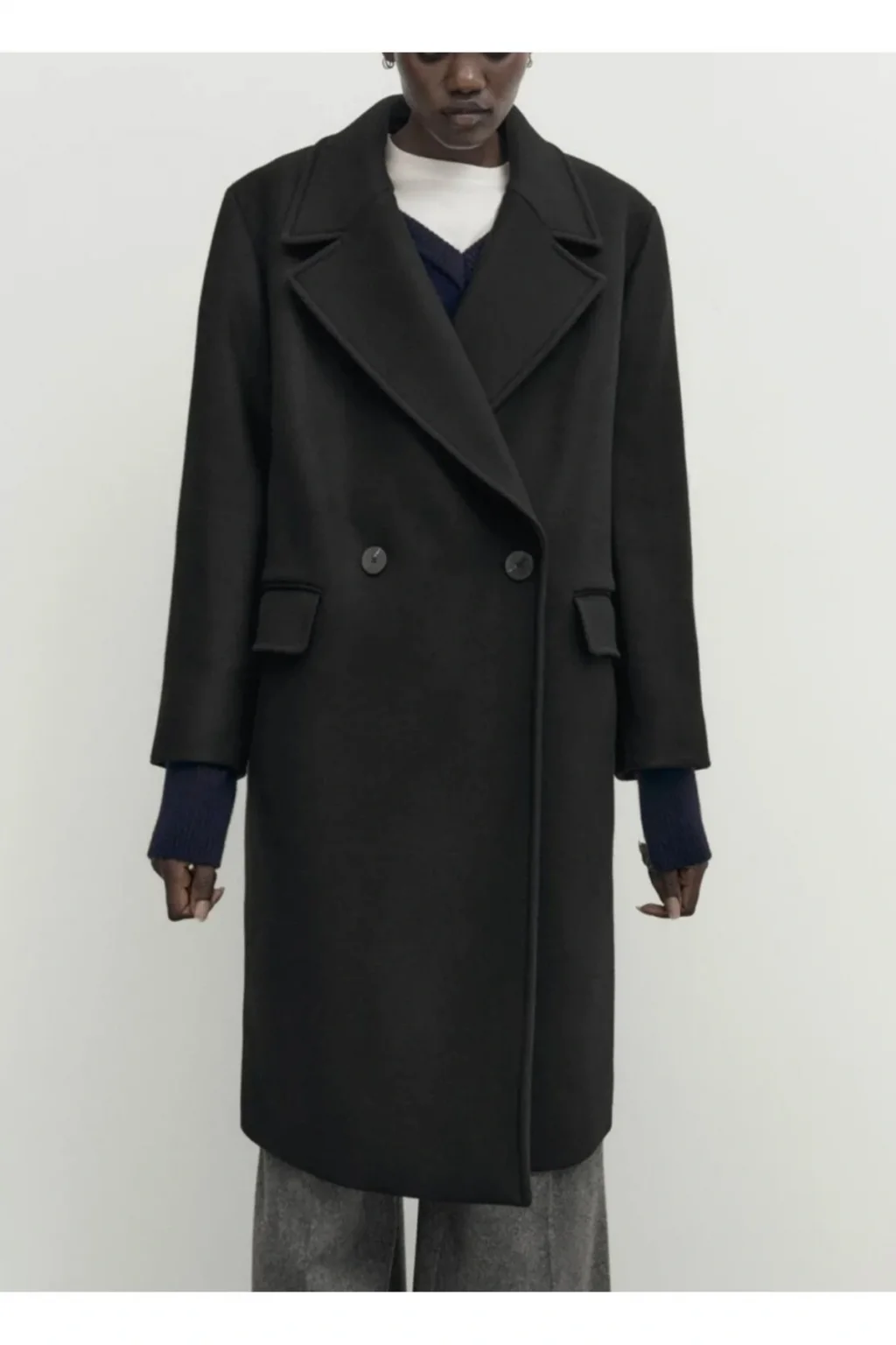 Kruvaze Yün Karışımlı Kaşe Kaban