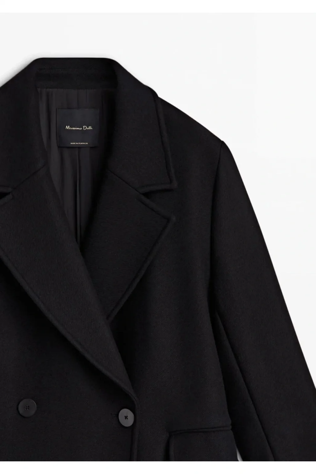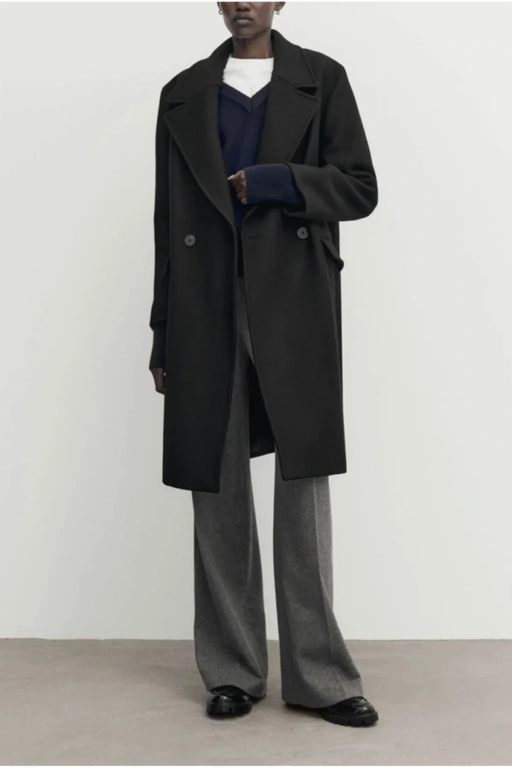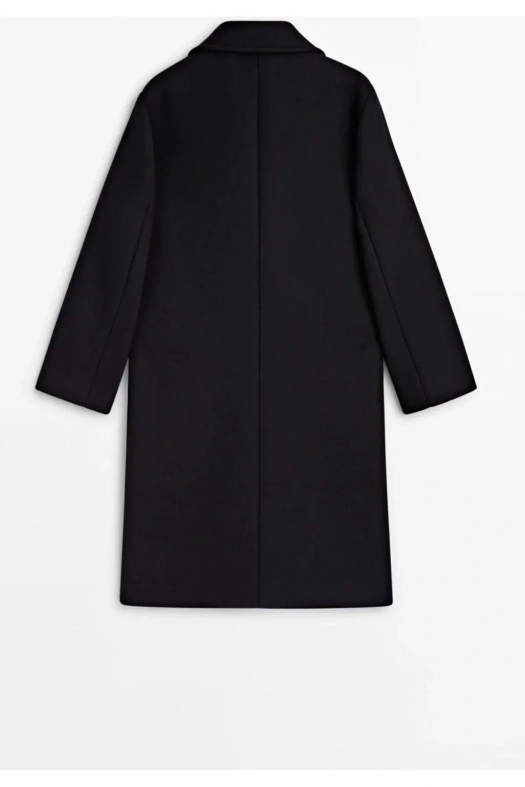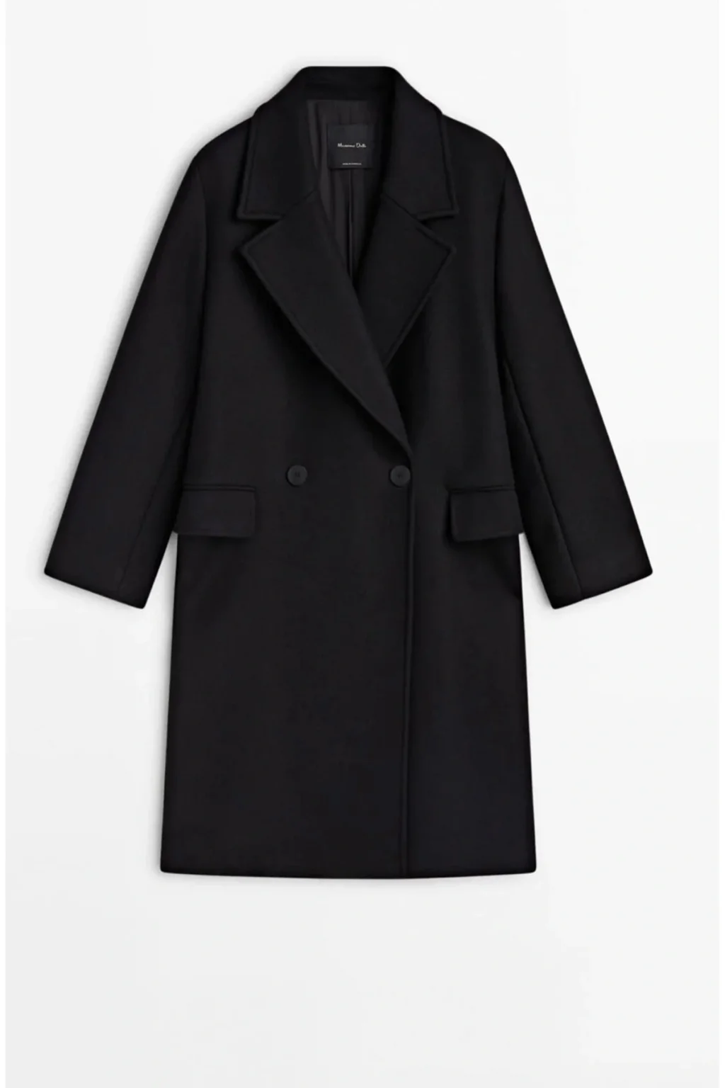 Siyah Kruvaze Yün Karışımlı Kaşe Kaban