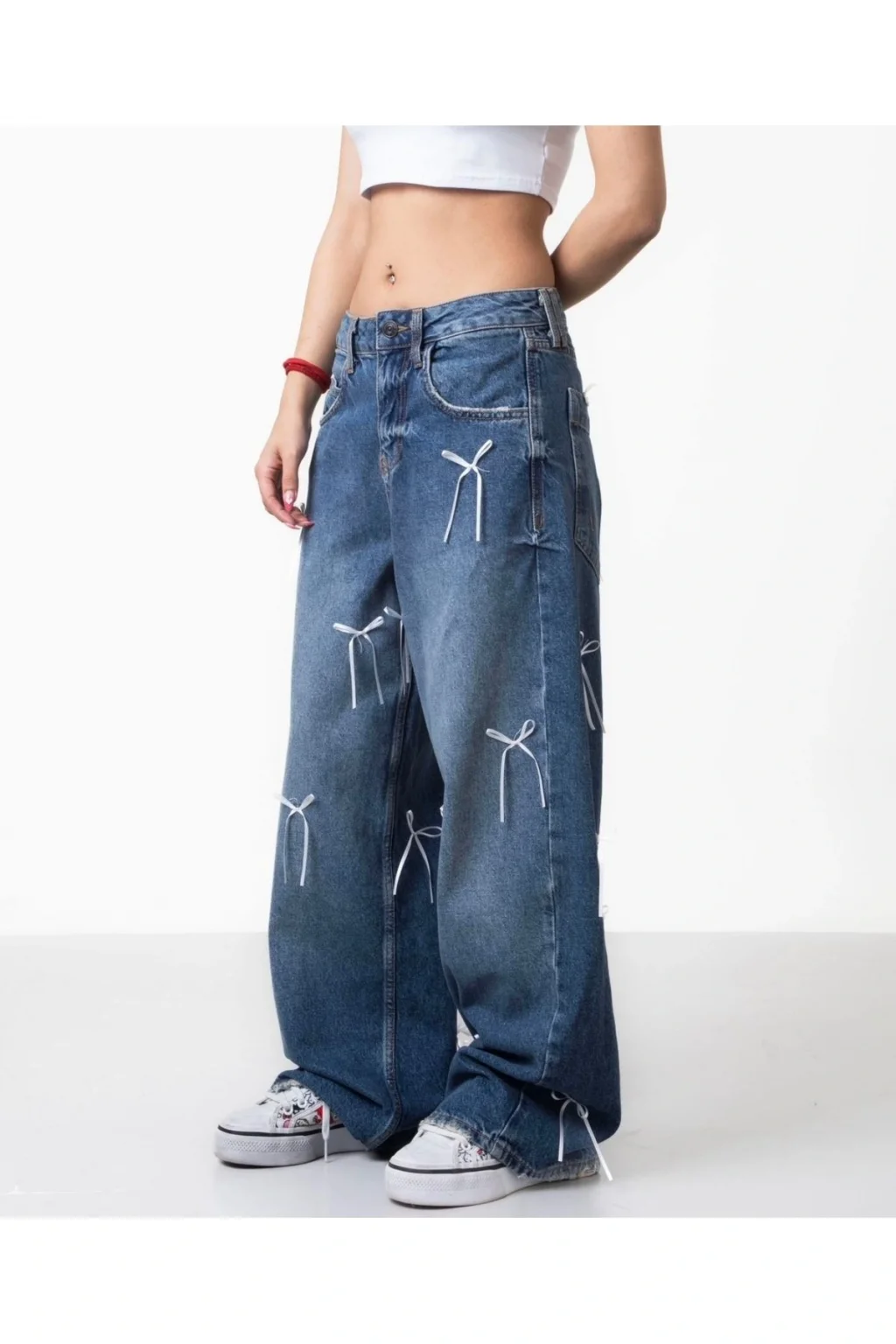 SB Düşük Bel Geniş Paça Kot Pantolon