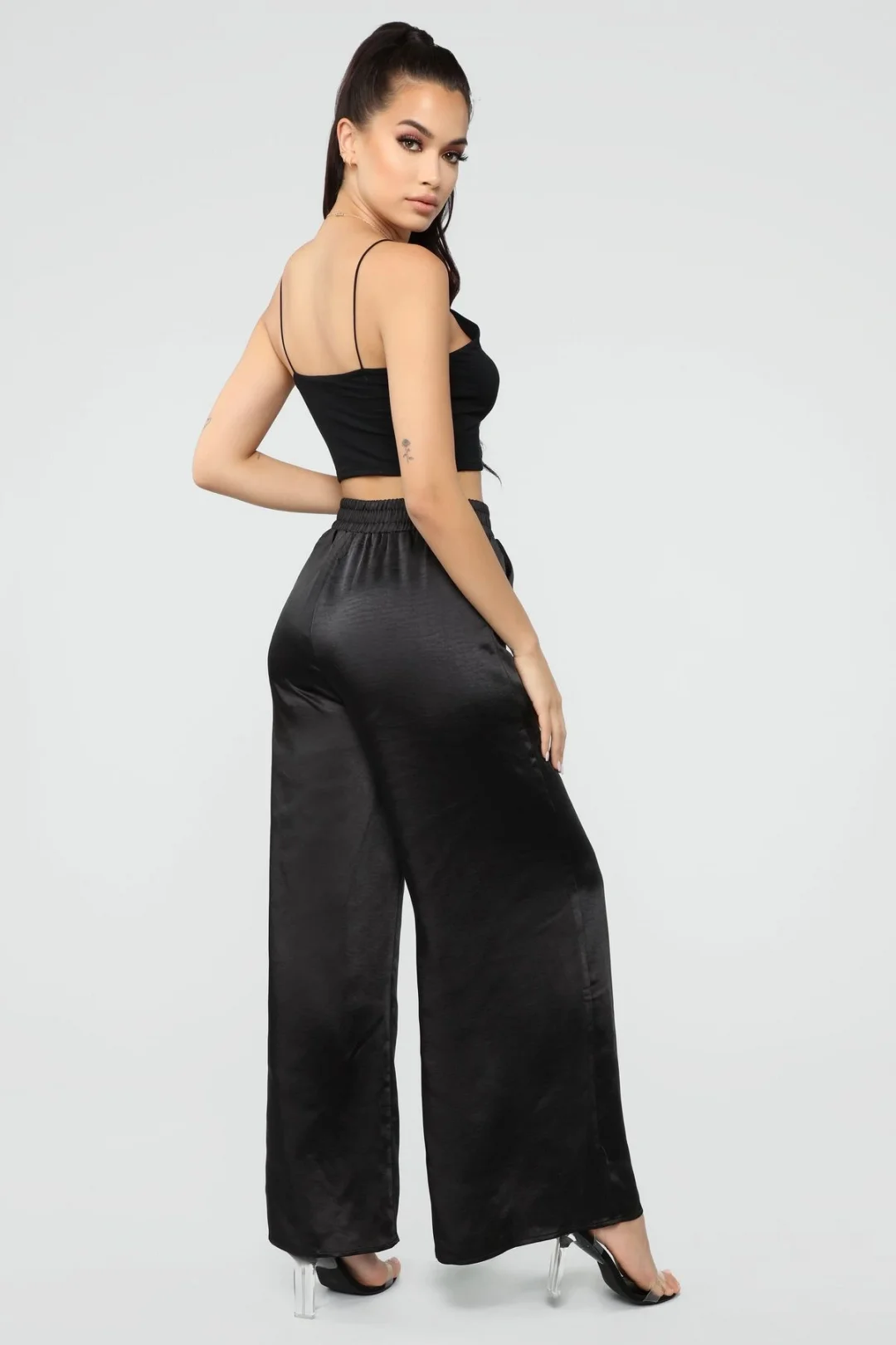 Bol paça rahatlığı ve şıklığı bir araya getirdiği Lastikli İnce Saten Kumaş Rahat Bol Paça Cepli Pantolon ile tarzınızı konuşturun.