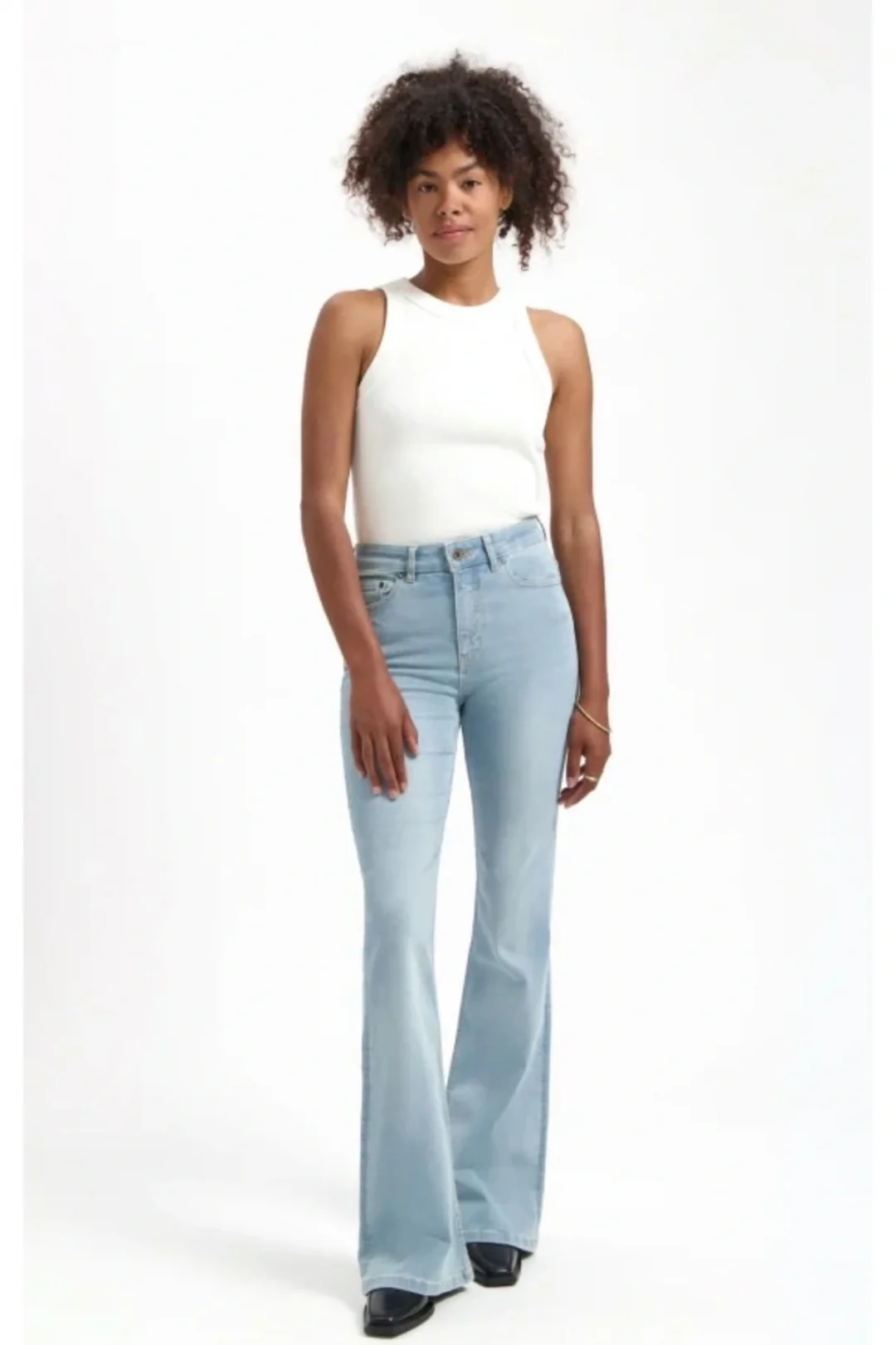 LİSETTE. 70 LERFEN ESİNLENEREK TASARLANMİŞFLARE KOT PANTOLONUMUZDUR .LİSETTE FLARE OVERDYE .ORGANİK PAMUK . RAHAT