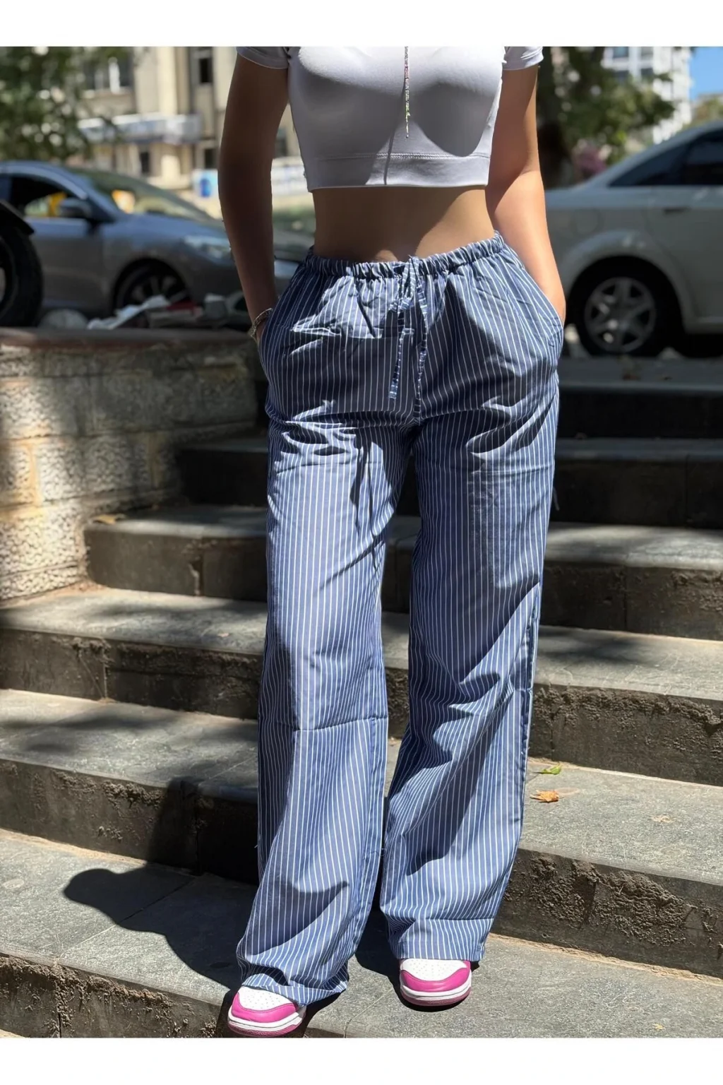 Bu çizgili keten pantolon ile yazın keyfini çıkarırken, zahmetsiz şıklığın tadını çıkarın. Hem spor hem de daha şık kombinleriniz için eşsiz bir seçenek! Sepetinize ekleyin, yaz stilinize ferah bir dokunuş katın!