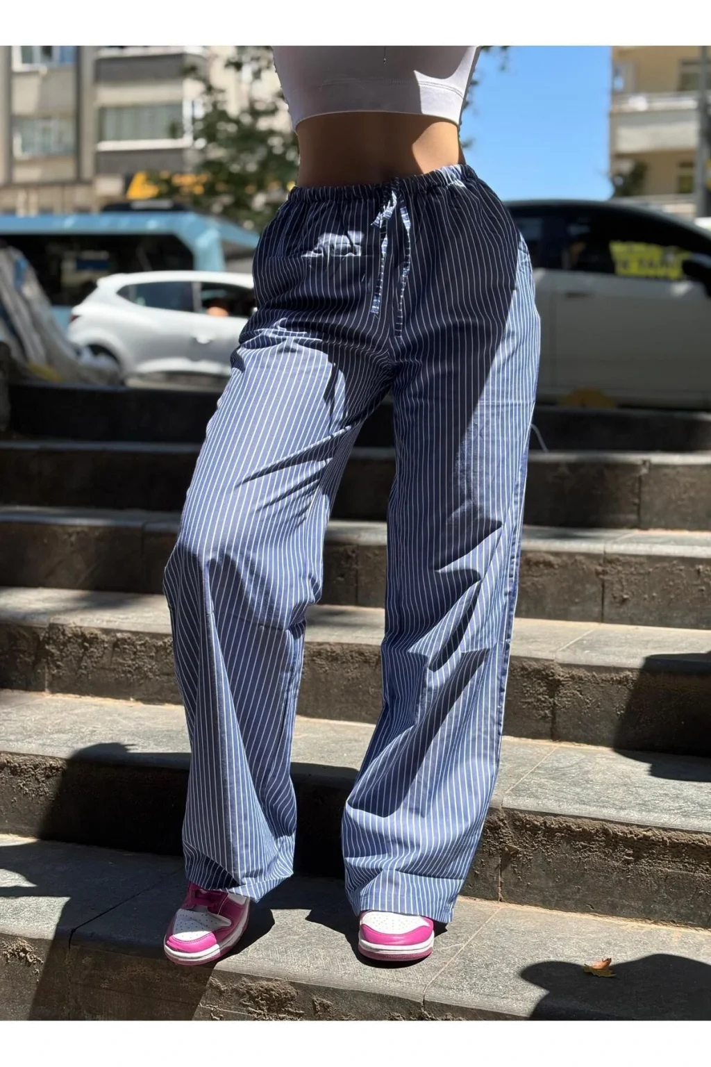 Trend Çizgili Desen:Zamansız ve şık dikey çizgili deseni, bacakları daha uzun gösterirken modern bir görünüm katar.