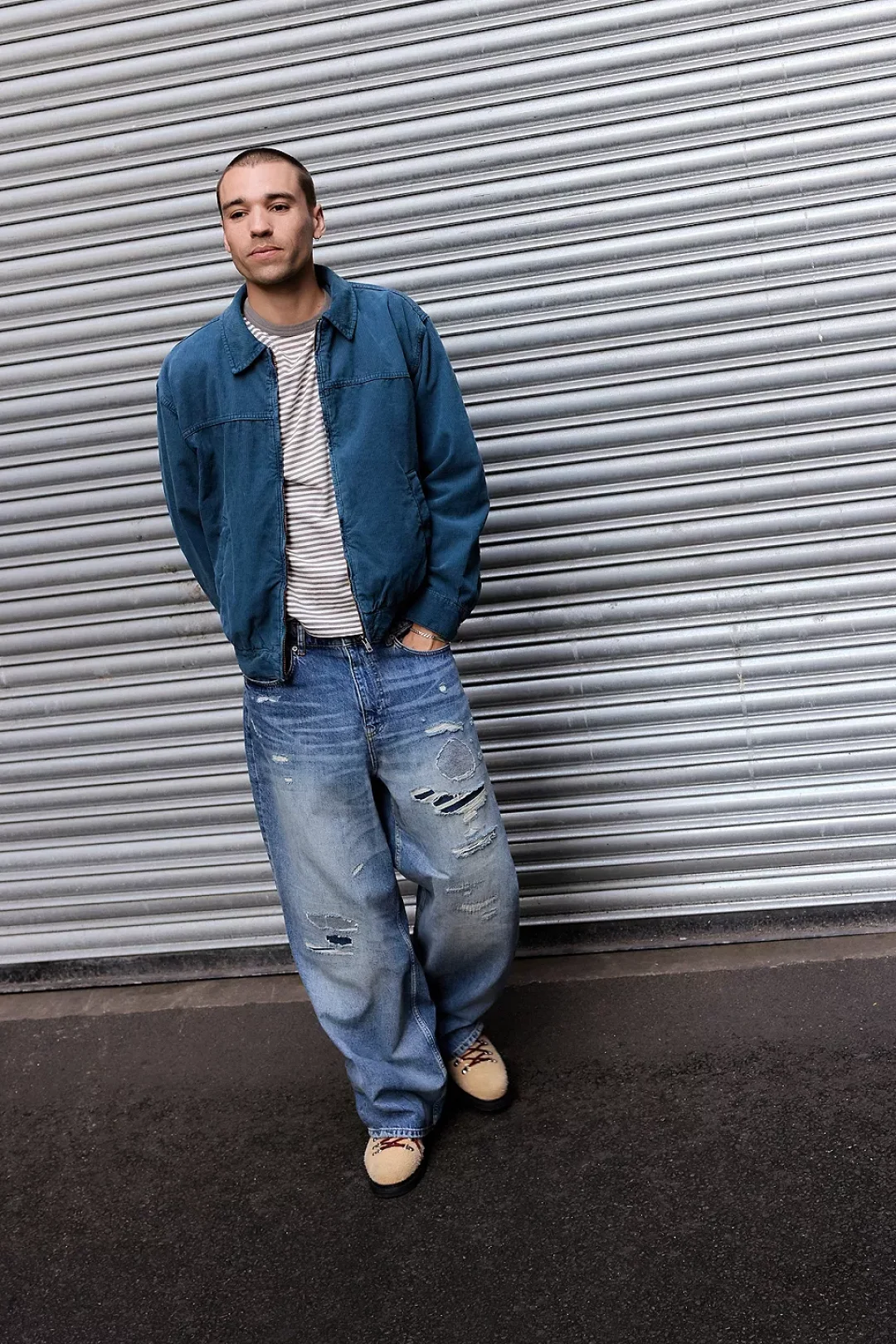 Koyu Lacivert Denim Bomber Unisex Ceket Oversize Mevsimlik Kaban