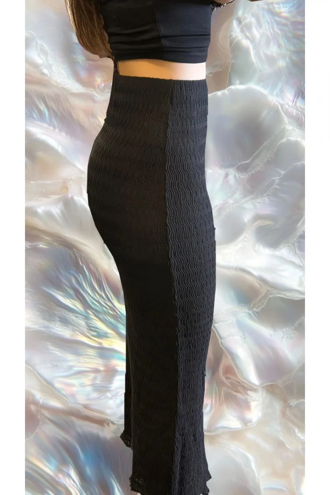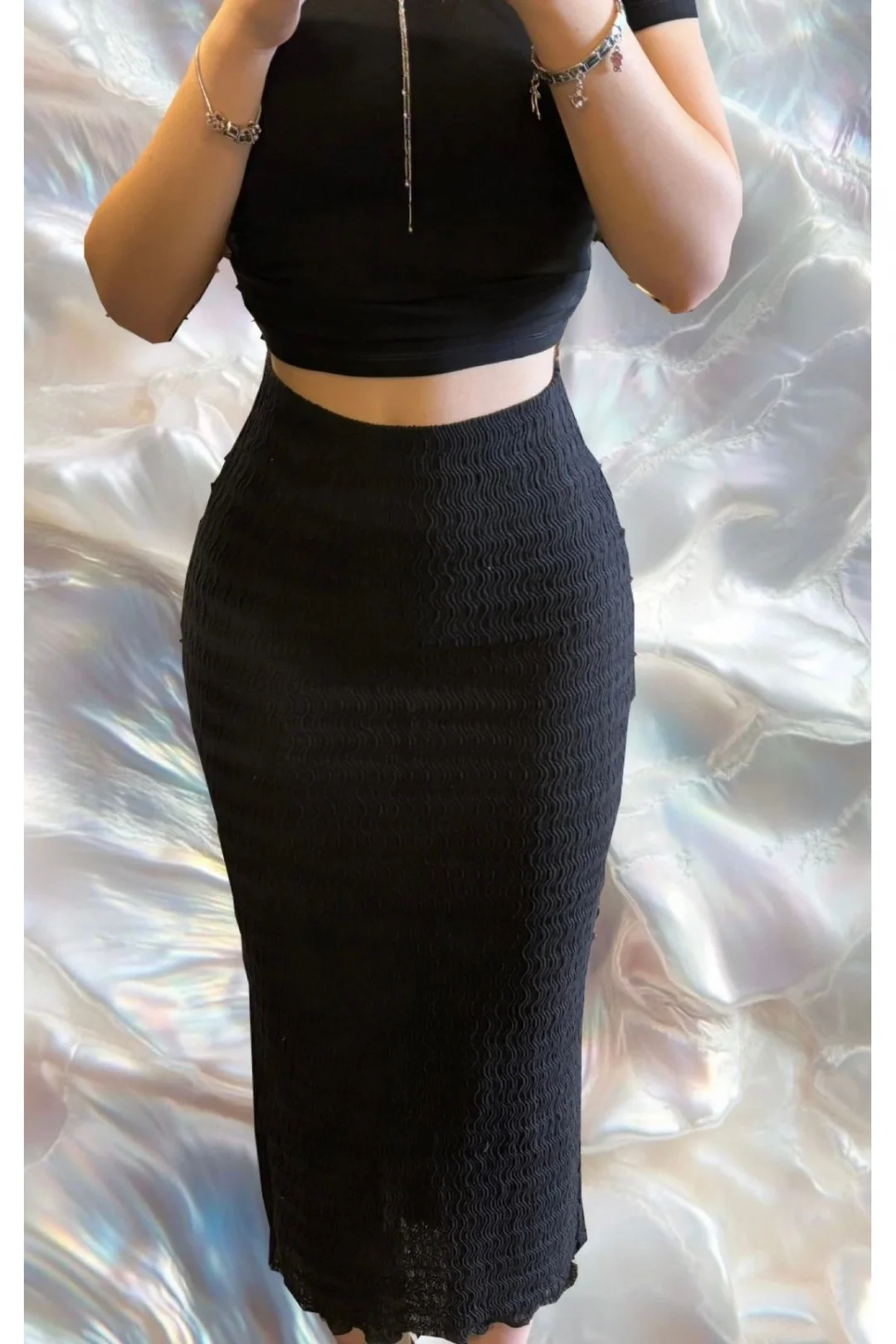 URB İçi Astarlı Şifon Siyah Uzun Etek