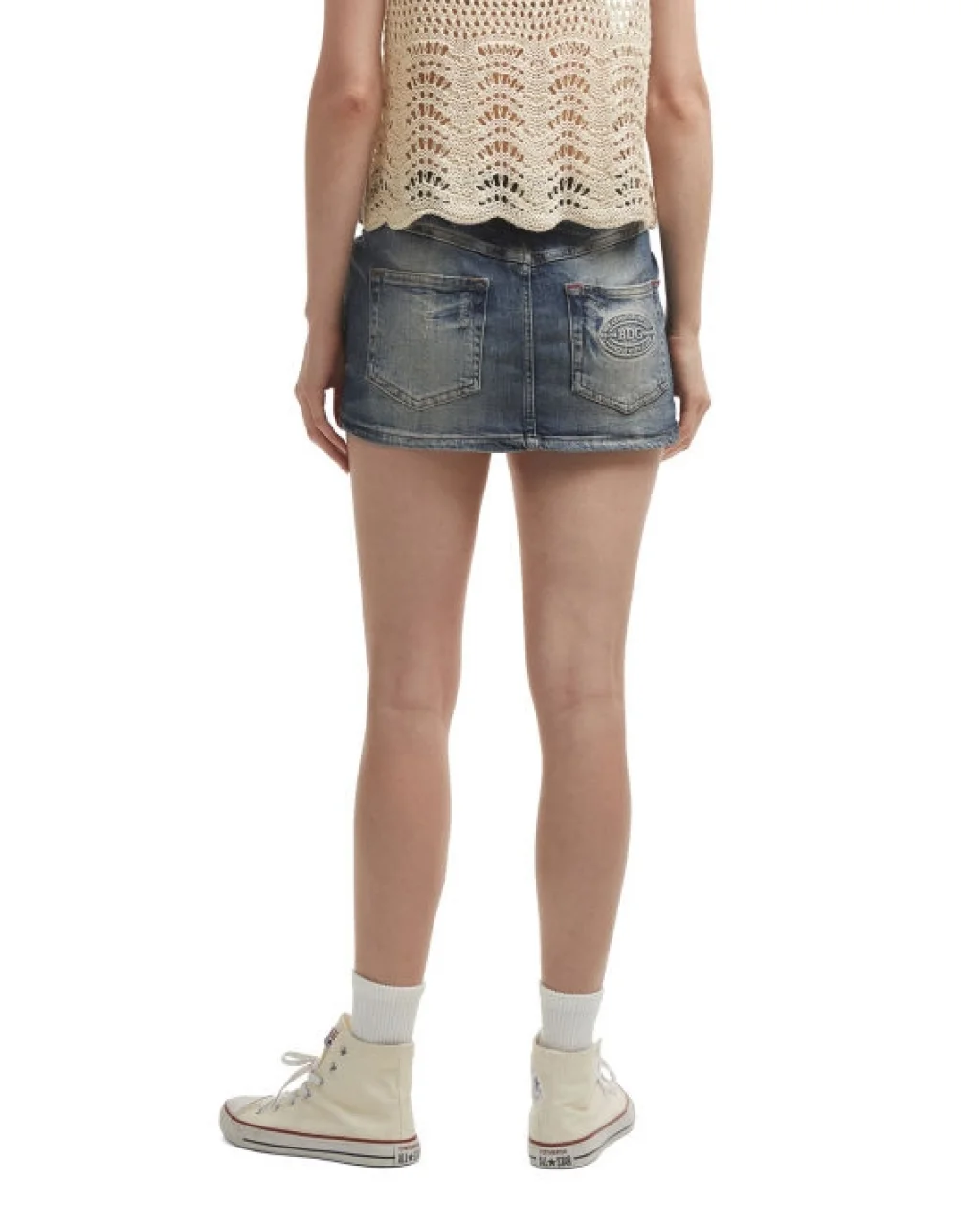 BDG Kemerli Yıpranmış Mavi Denim Mini Etek