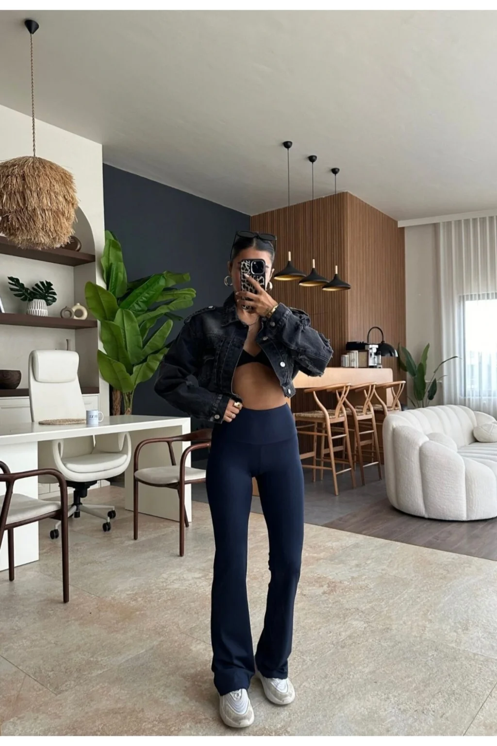 Orj Marka Düşük Bel İspanyol Paça Lacivert Tayt