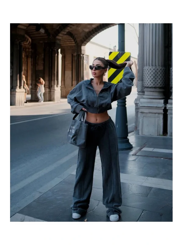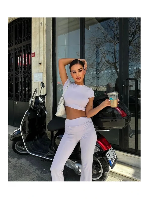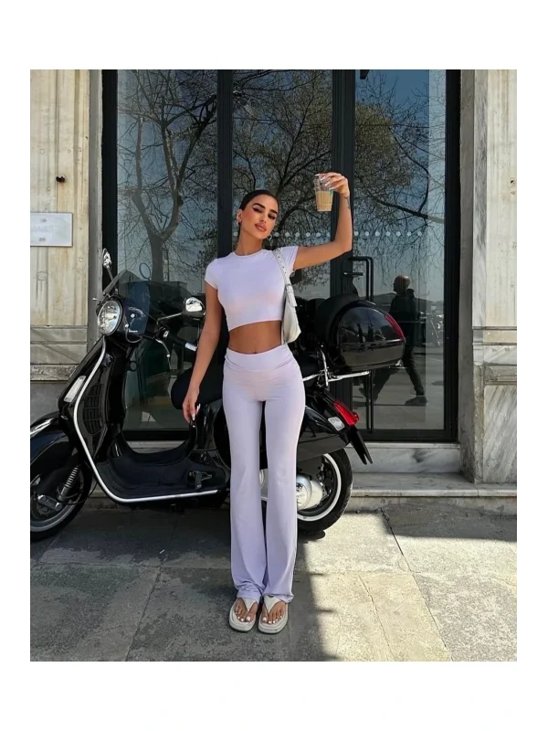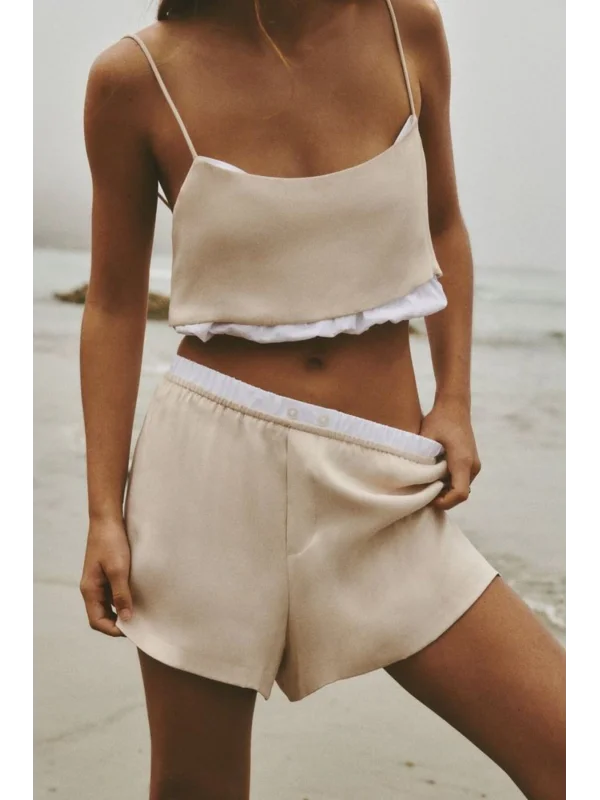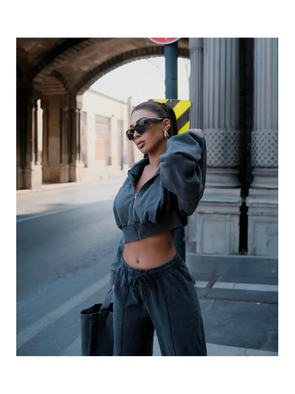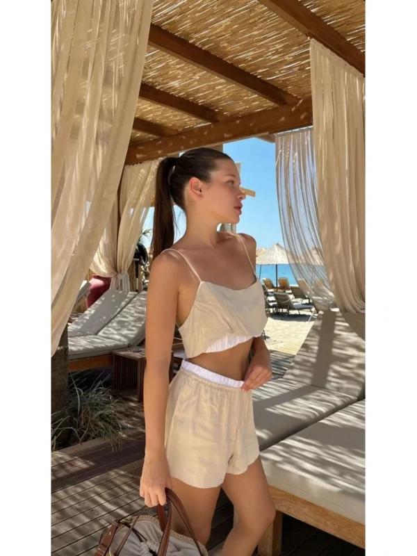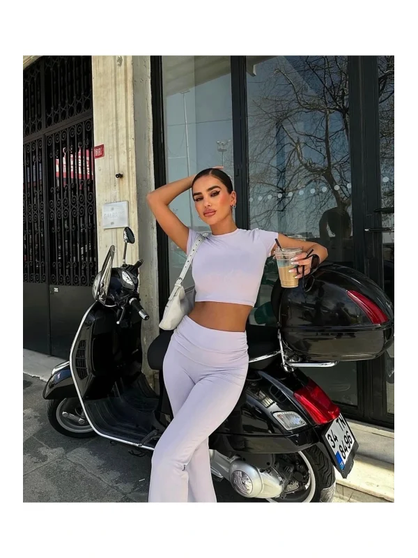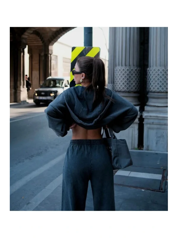 Dantel Crop Pantolon Şortlu Siyah Takım