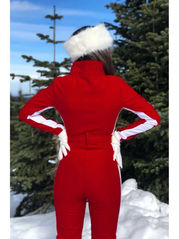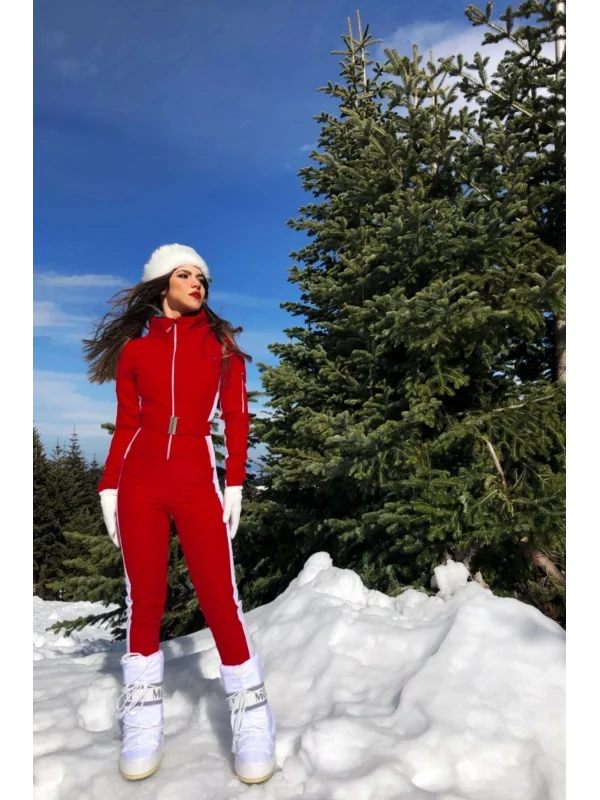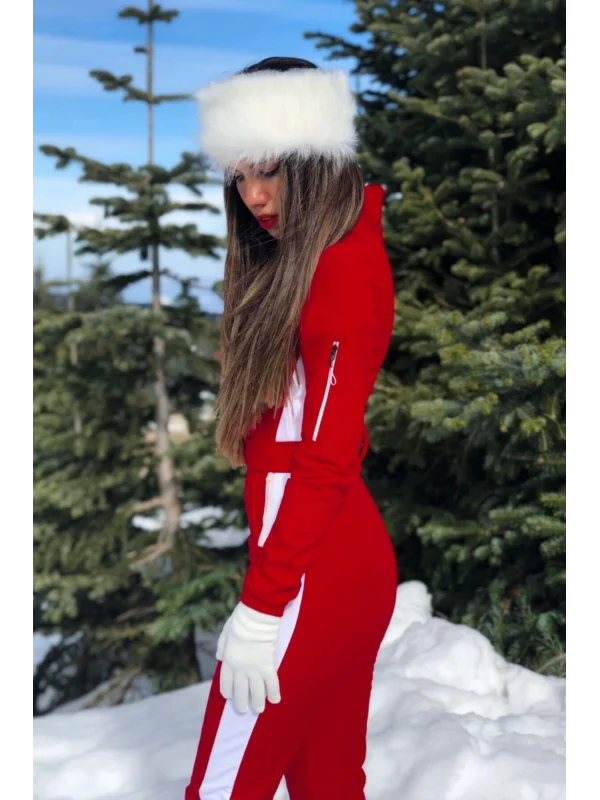 Kırmızı Yanları Şeritli Dar Paça Kayak Tulumu