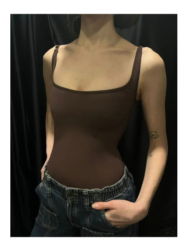 Kahve Skms Toparlayıcı Düz Yaka Bodysuit Şortlu Tulum Korse