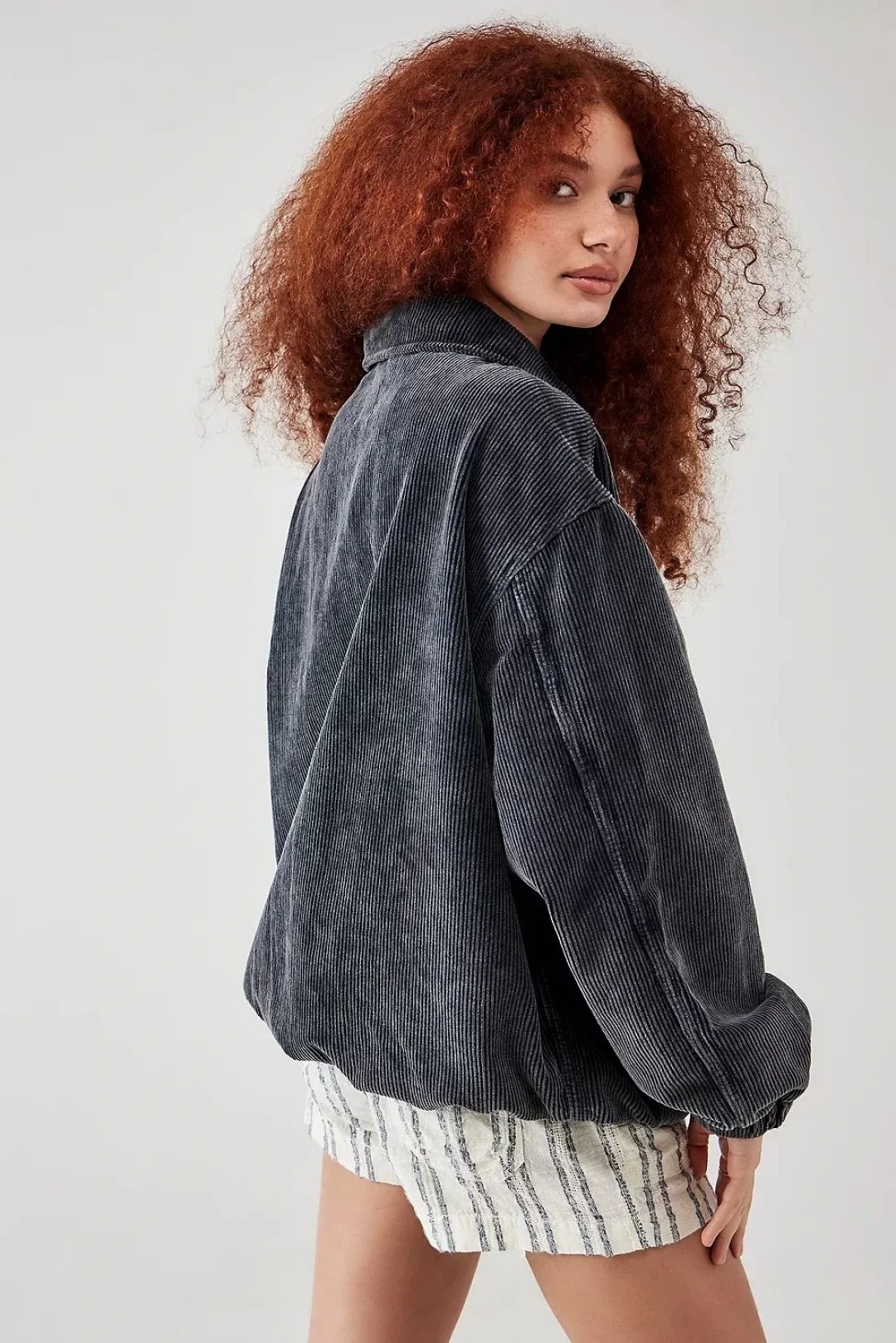 Bu sezonun trend parçalarından biri olan VibeGaia Füme Bomber Ceket Oversize'ı hemen sepetinize ekleyerek tarzınızı tamamlayabilirsiniz.