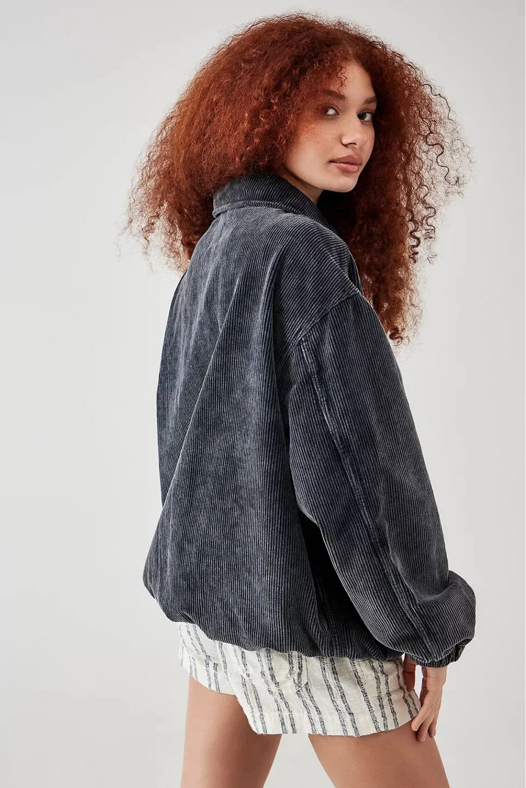 VibeGaia Füme Bomber Ceket Oversize, şıklığı ve konforu bir arada sunuyor. Yumuşak dokulu ve hafif yapısıyla mevsimlik olarak kullanabileceğiniz bir kaban modelidir.