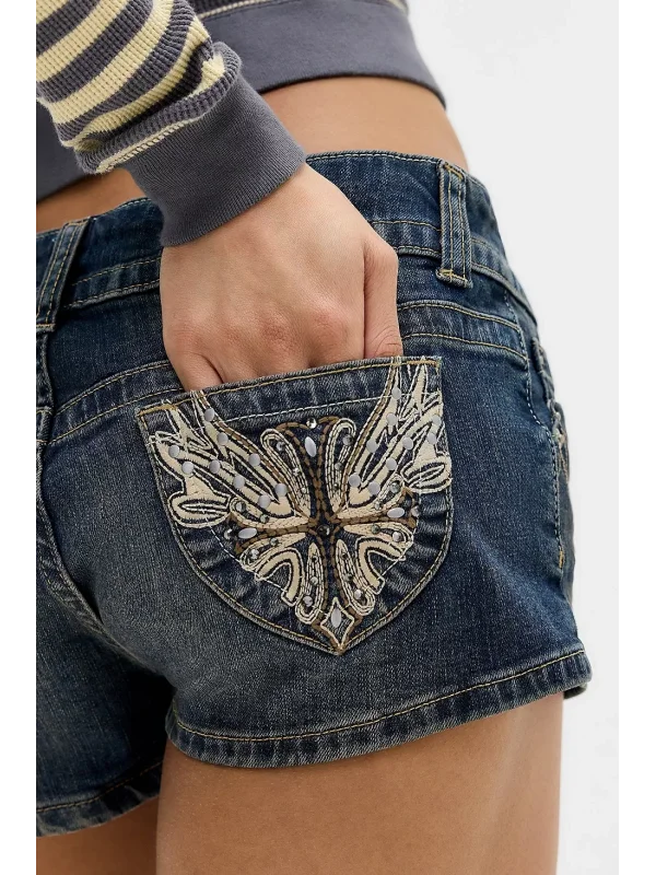 Y2K stilini modern sokak modasıyla buluşturan bu düşük bel flare jean, ön yüzeyindeki minimal yıldız taş detaylarıyla dikkat çekerken arka kısmındaki sade tasarımıyla dengeli ve şık bir görünüm sunar.