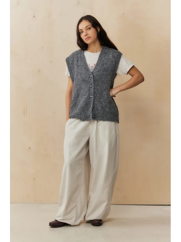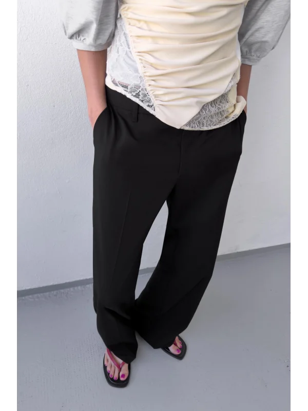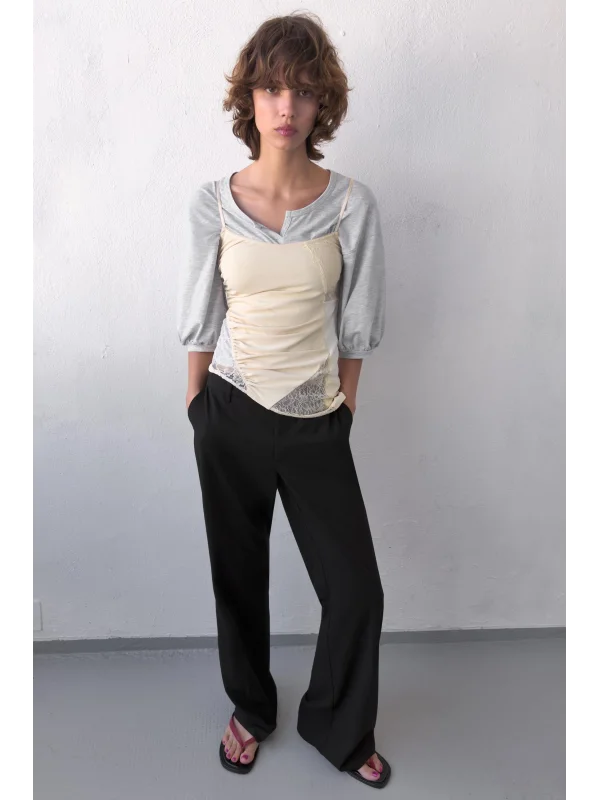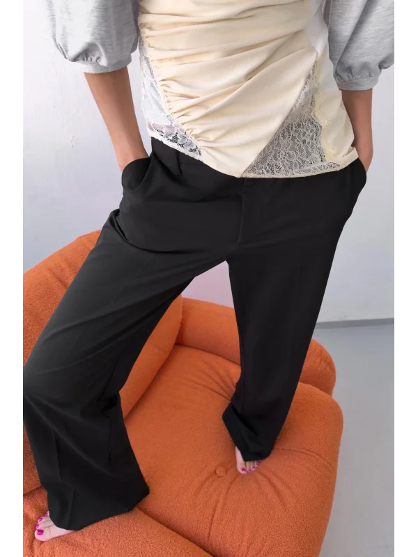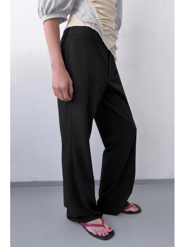 Vücuda oturan üst kalıbı ve dizden aşağı doğru genişleyen paça formu sayesinde hem feminen hem de cool bir silüet oluşturur. Düşük bel kesimi, crop parçalarla kombinlendiğinde Y2K ruhunu tam anlamıyla yansıtır.