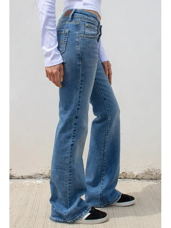 Orta Bel Rahat Kesim Flared Geniş Paça Vintage Mavi Kot Pantolon