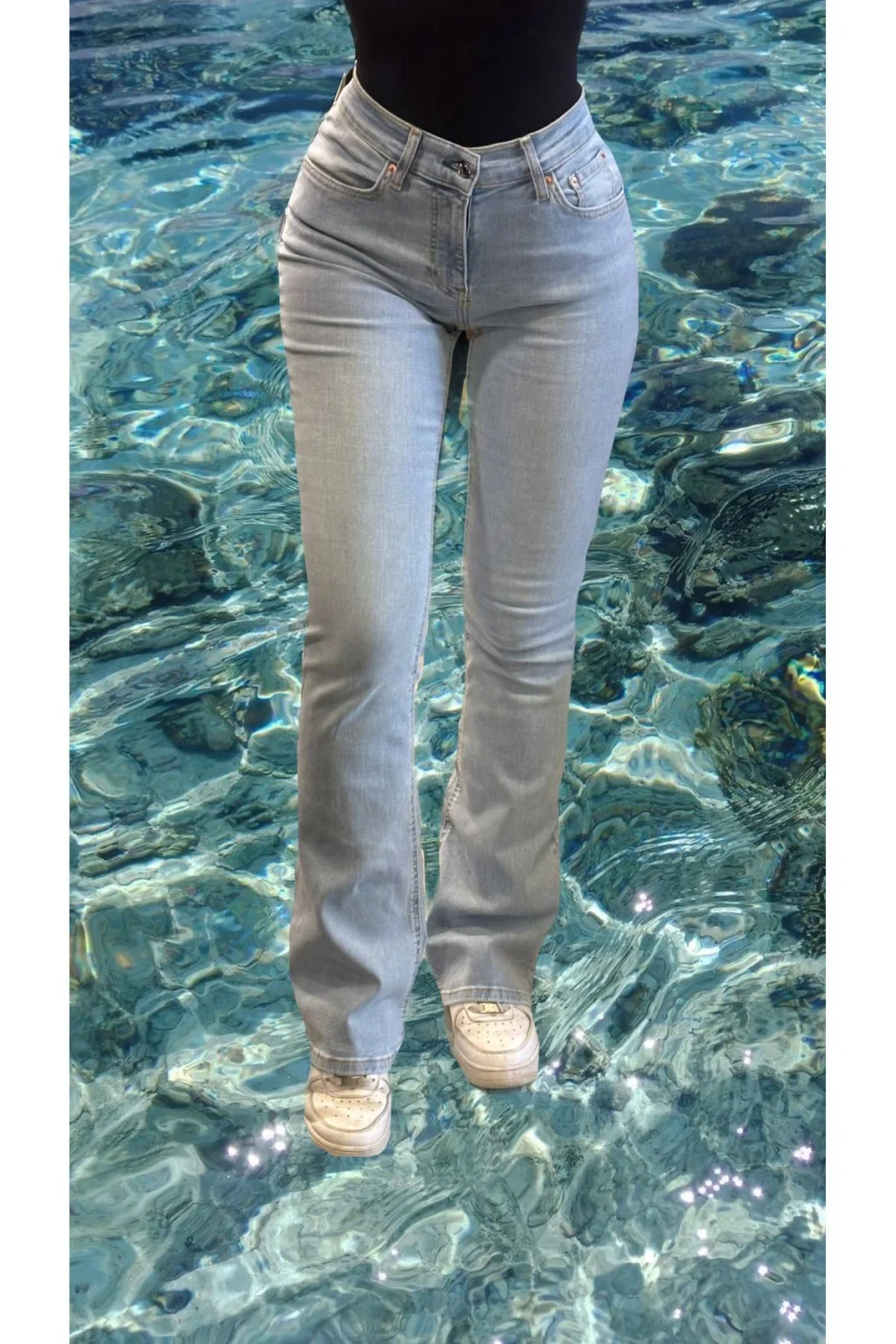 - Günlük kullanım için ideal, casual tarzıyla her ortama uyum sağlayan buz mavisi pantolon.; - Esnek yapısı sayesinde gün boyu rahat hareket etme özgürlüğü sunar.; - Full fermuar kapama özelliği ve düğme detayı ile pratik kullanım imkanı sağlar.; - Yüksek kaliteli denim kumaşı, dayanıklılığı ve konforu bir arada sunar.; - Normal bel tasarımı ile vücuda tam otururken şık bir görünüm kazandırır.; - İspanyol paça kesimiyle modern ve trend bir siluet oluşturur.; - Likra materyali sayesinde esneklik artırılır ve formunu korur.; - Uzun boy tasarımı ile bacakları olduğundan daha uzun gösterir.; - Bootcut kalıbı, ayakkabılara kolayca uyum sağlayarak stilinizi tamamlar.; - Düz deseniyle sadelikten yana olanların tercihi olup, kombinlerinizde kolaylıkla yer bulur.; BEDEN ÖLÇÜLERİ: 32 beden; bel:58cm boy:103cm / 34 beden; bel:60cm boy:104cm / 36 beden; bel:62 boy:106cm