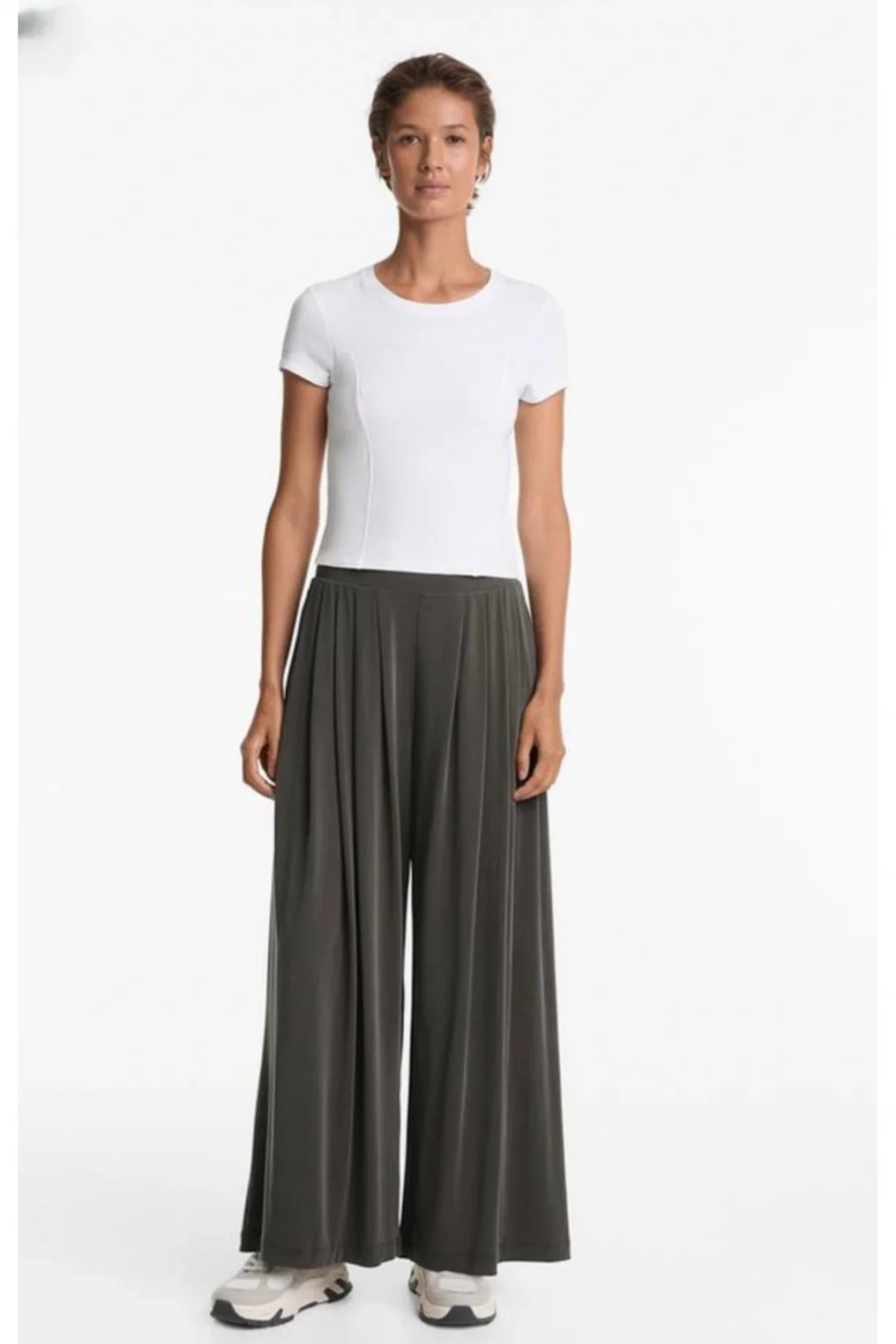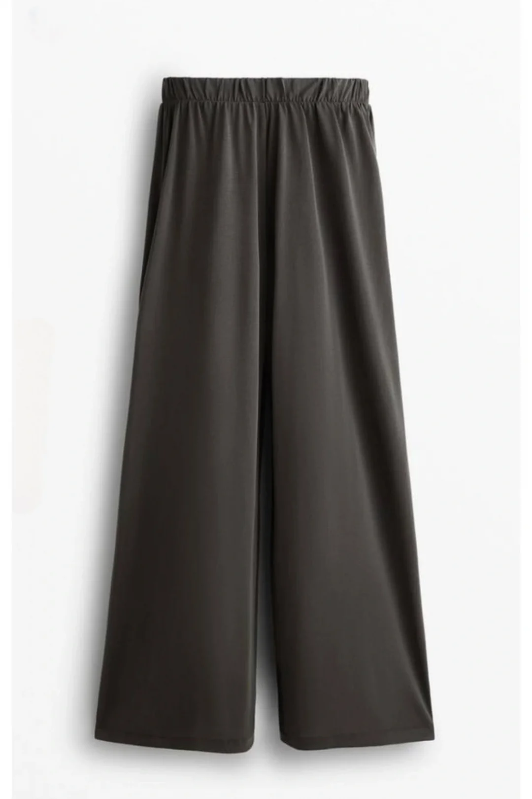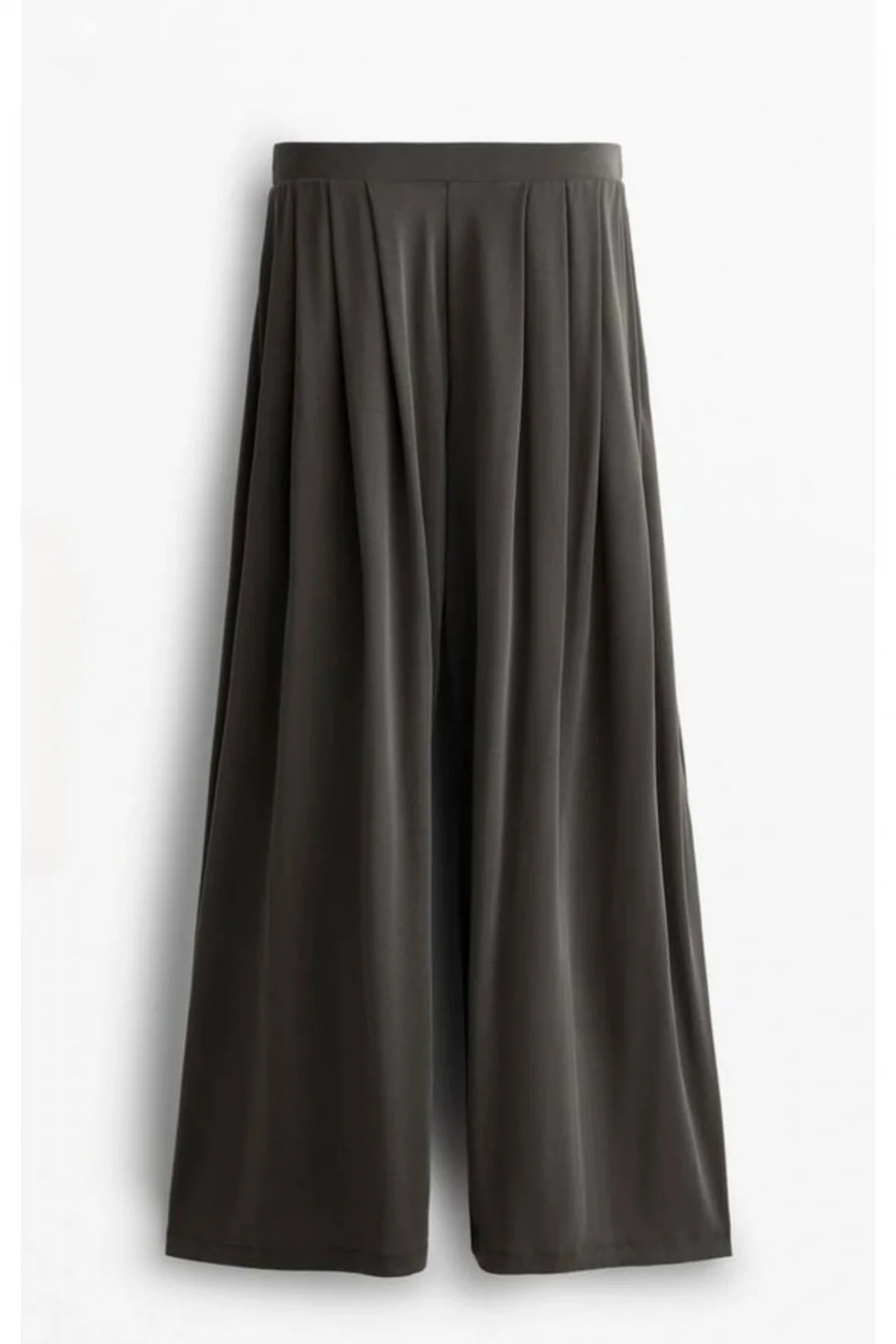 Kadın Yüksek Bel Pileli Füme Modal Karışımlı Bol Paça Uzun Pantolon