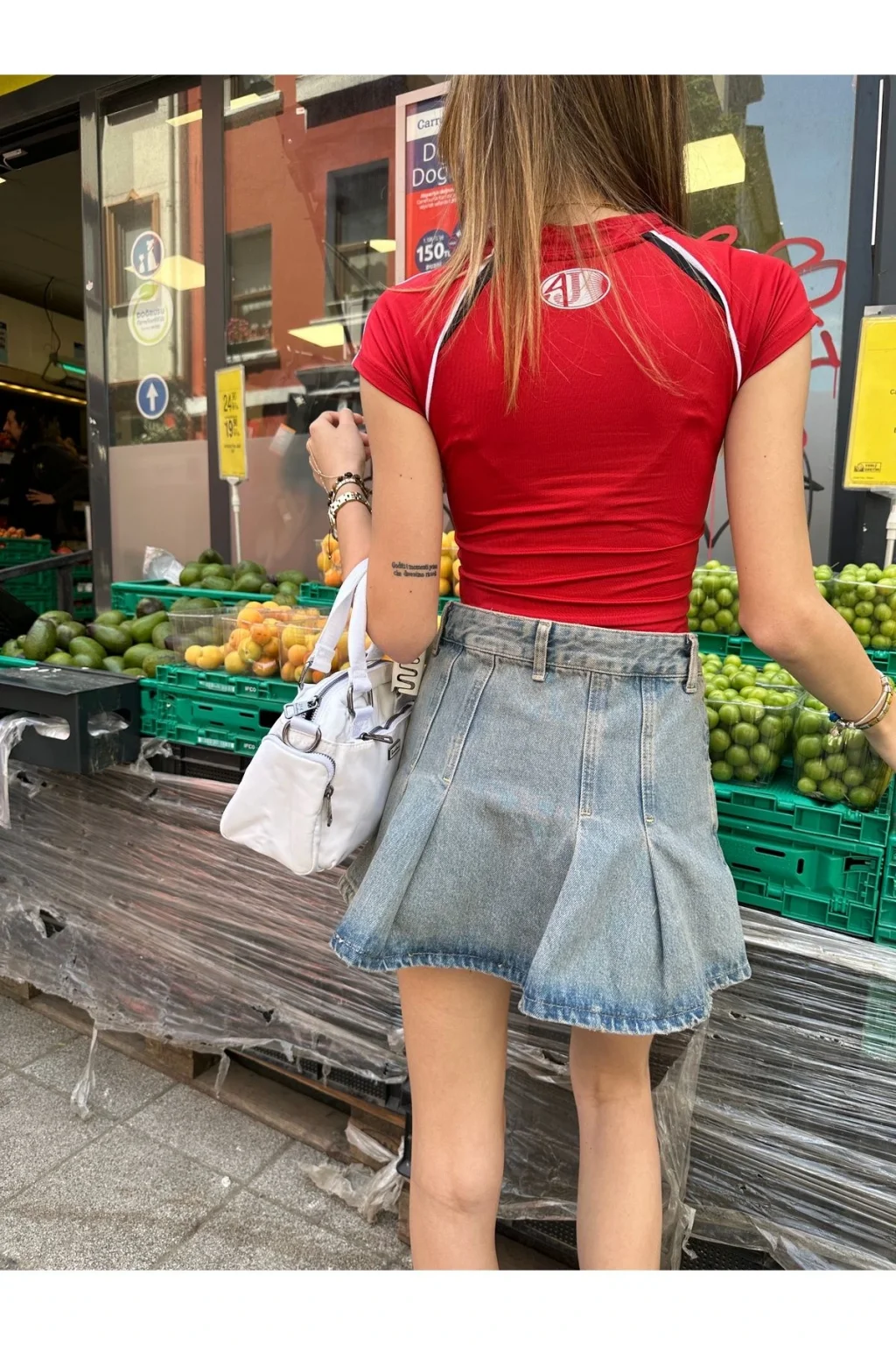 Denim kumaşın dayanıklılığı ve şıklığı bir arada sunan pileli yıkama etek, günlük kullanım için idealdir; Standart boyu ile farklı vücut tiplerine uyum sağlayarak rahat bir kullanım imkanı tanır; Denim kalıbı sayesinde zamansız bir tarz yaratırken, her türlü üst giyimle kolayca kombinlenebilir; Yüksek kaliteli denim materyali ile uzun süreli kullanım vaat eder ve formunu korur;