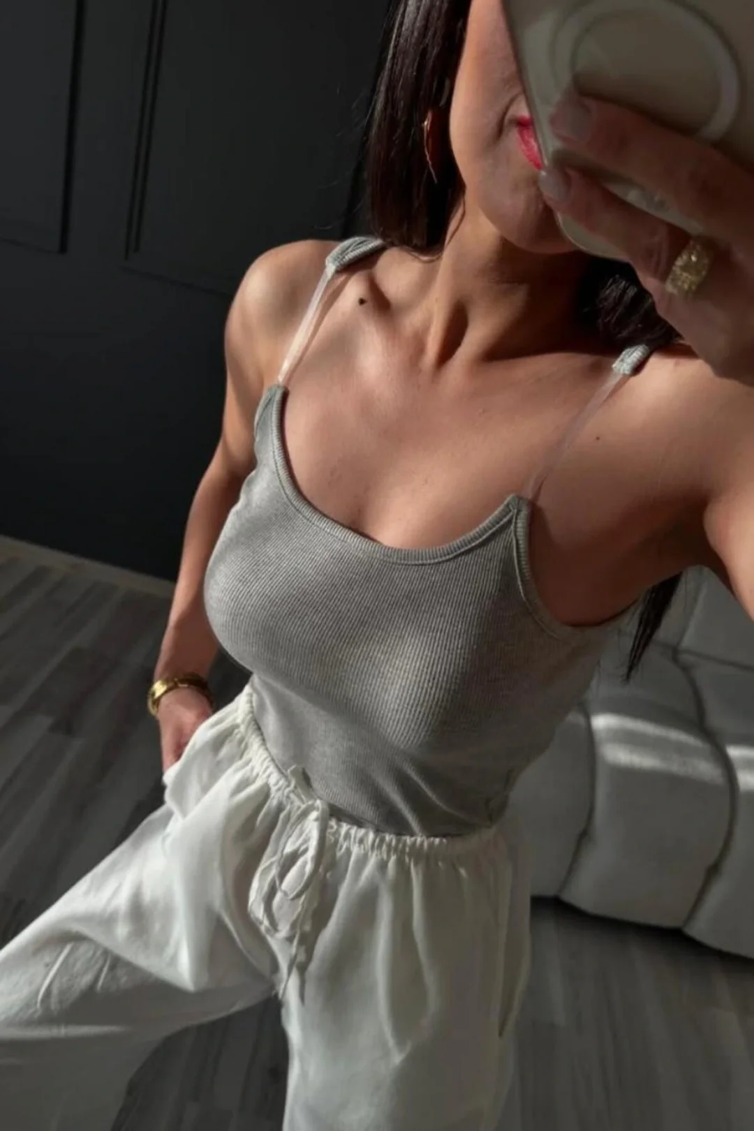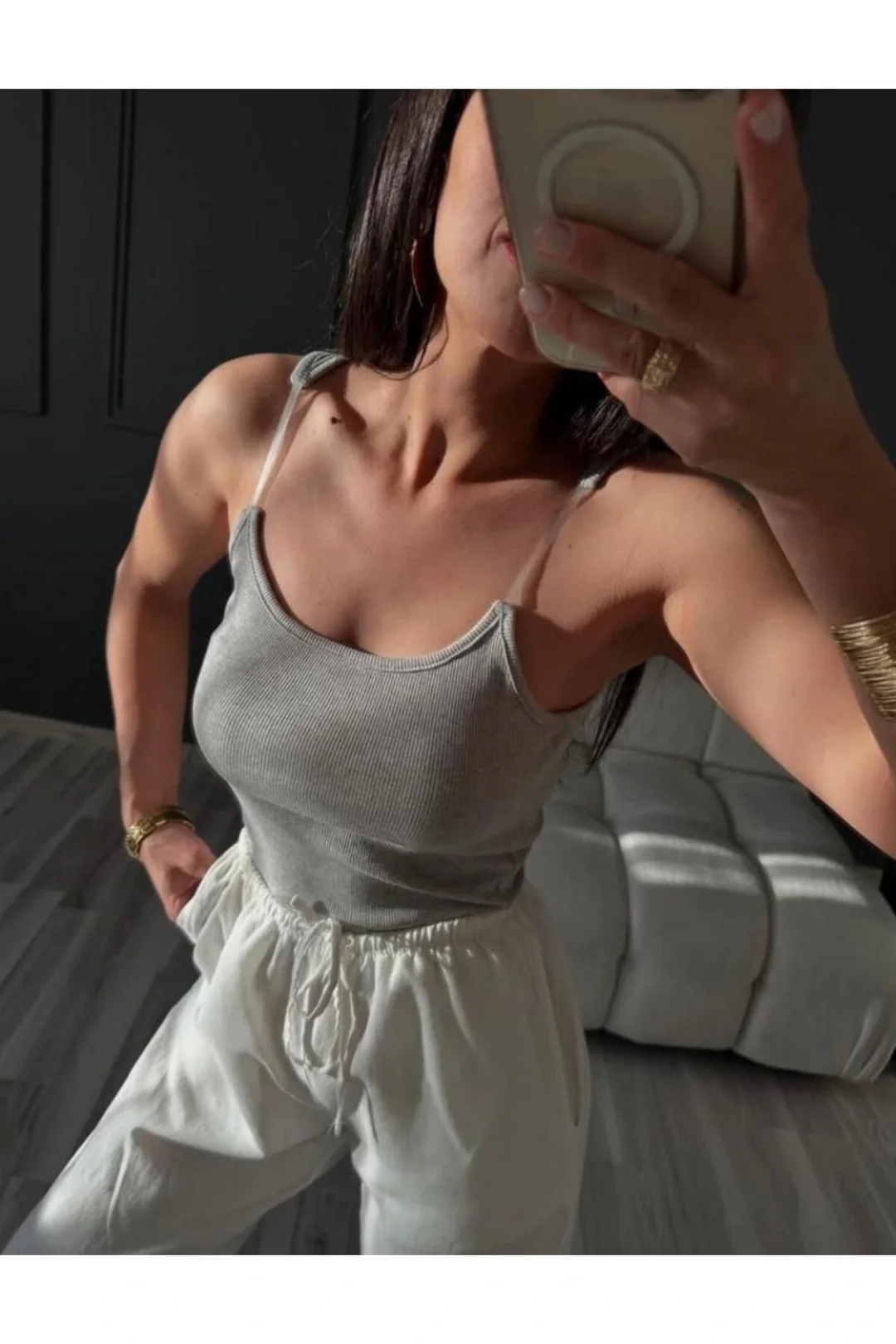 Kadın Kare Yaka Body Fit Kesim Basic Crop Bluz-Atlet