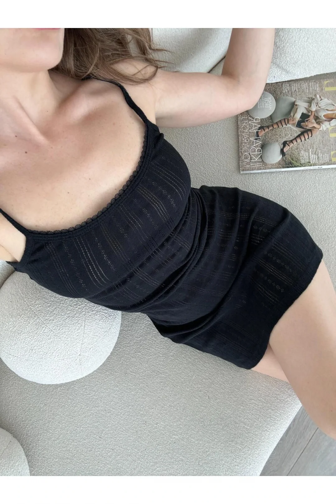 Siyah Askılı Örme Mini Elbise